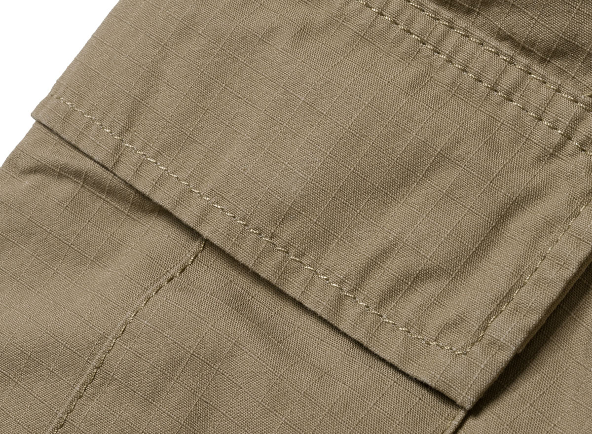 CARHARTT WIP Regular Cargo Pant Leather I015875. Cargo pants coupe regular en Ripstop 100% coton. Taille basse. Braguette zippée. Pattes de serrage à la taille. Genoux renforcés. "Square label".