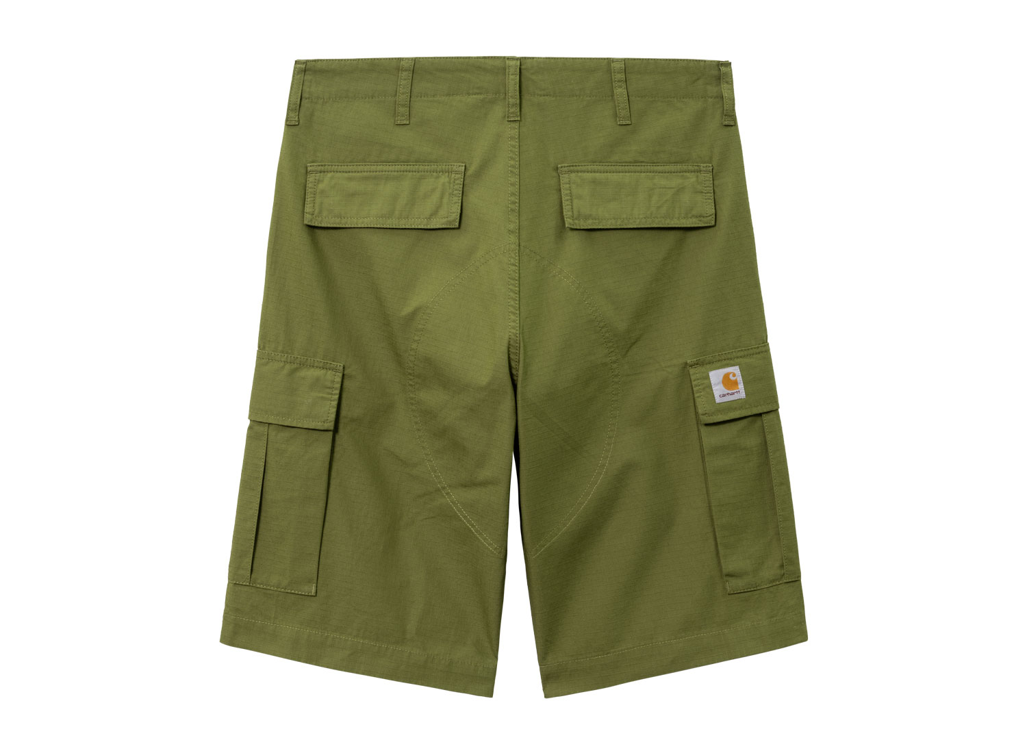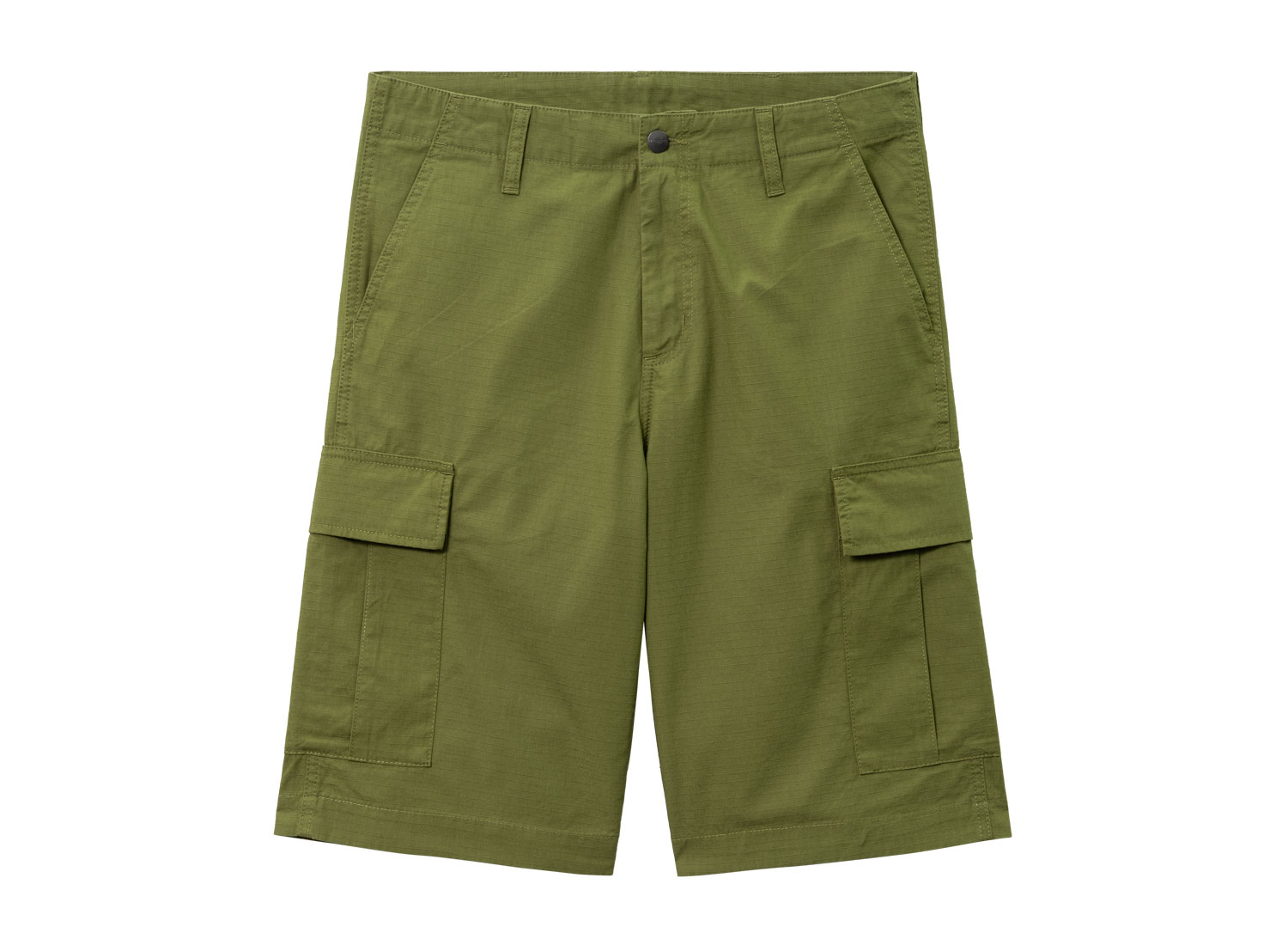 CARHARTT WIP Regular Cargo Short Kiwi I028246. Short Cargo coupe regular en ripstop 100% coton. Braguette zippée. Renforts aux endroits particulièrement sollicités. Étiquette carrée.