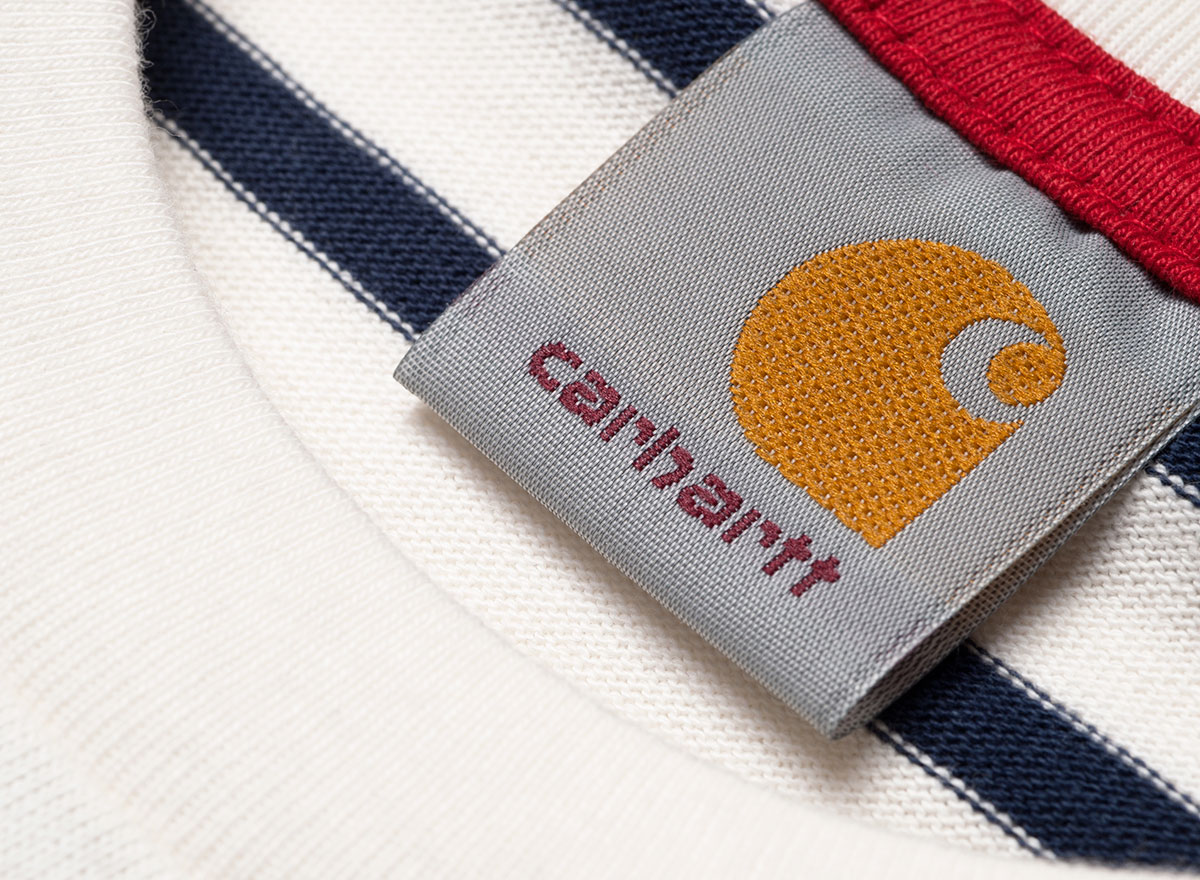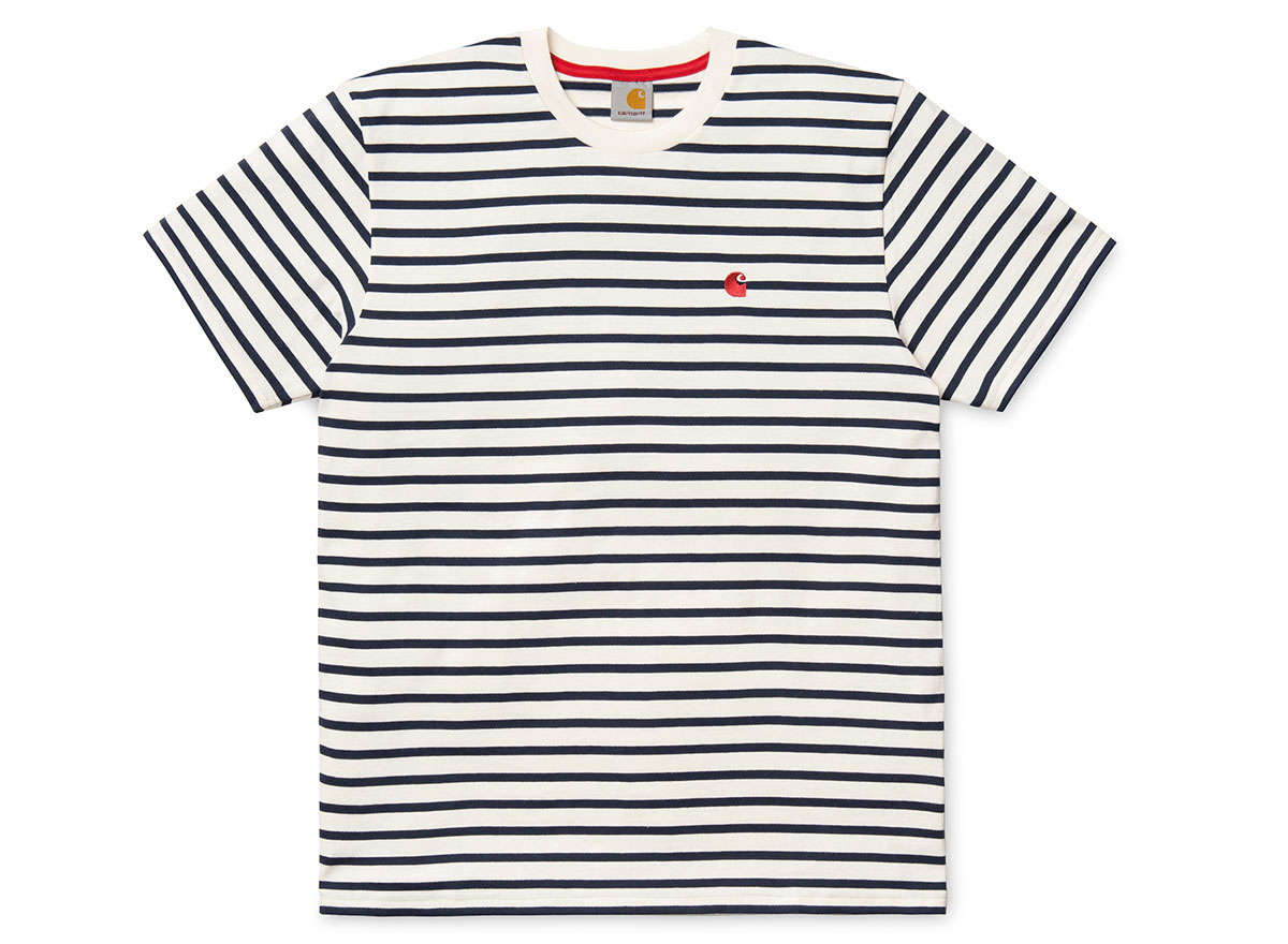 CARHARTT WIP Robie Tshirt Snow. T-shirt rayé en jersey épais 100% coton. Coupe droite. Bord-côte au col. Logo contrasté brodé sur la poitrine.
