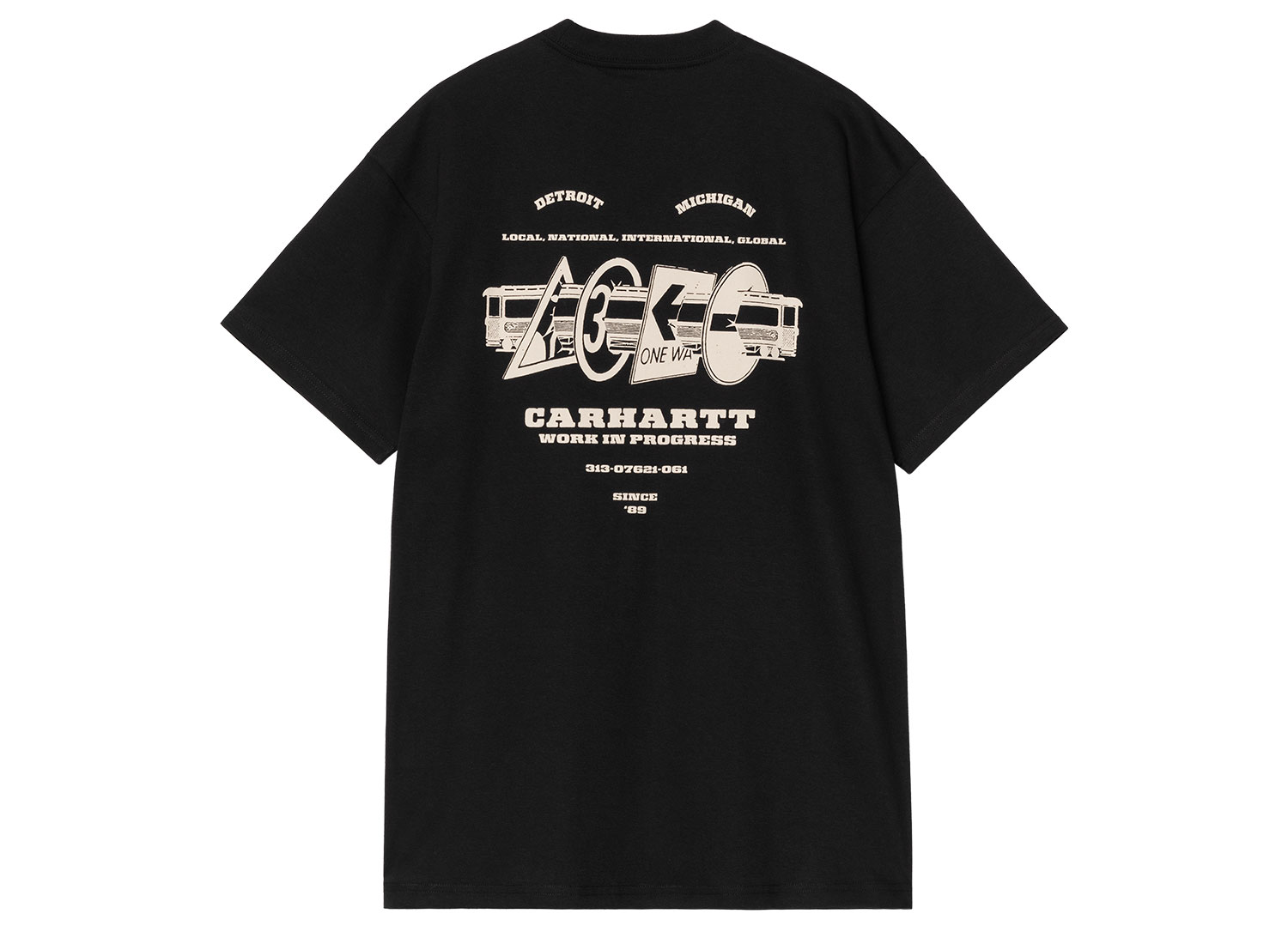 CARHARTT WIP Runaway Tshirt Black / Wax I034409. Tshirt confectionné en jersey de coton léger. 100 % coton biologique. Coupe loose. Tissu délavé. Imprimés graphiques sur la poitrine et au dos.