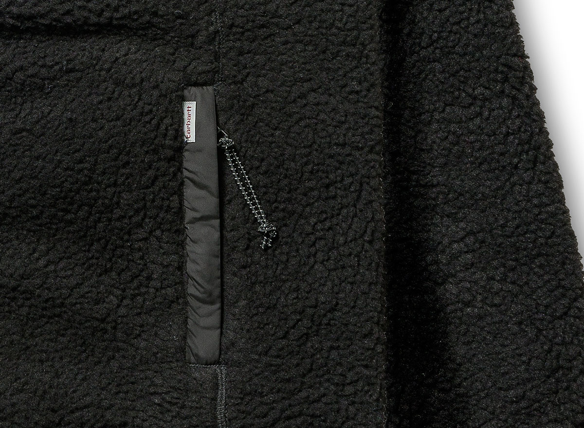CARHARTT WIP Scout Jacket Liner Black I024573. Jolie veste zippée en Sherpa 100% polyester. Doublure en filet Col montant. Fermeture zippée sur le devant. Poche poitrine. Poches latérales avec zip.