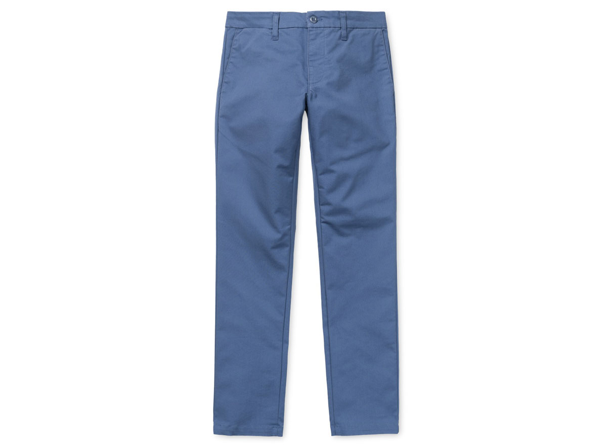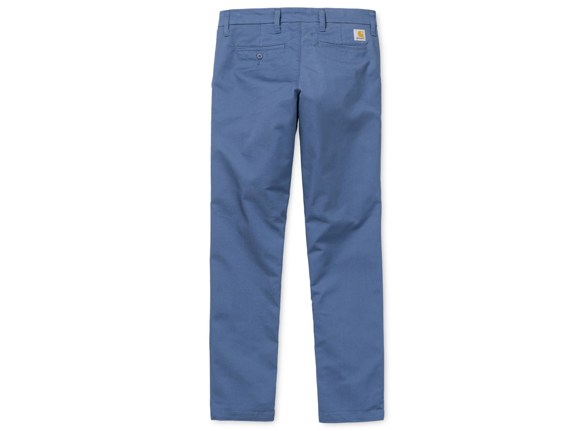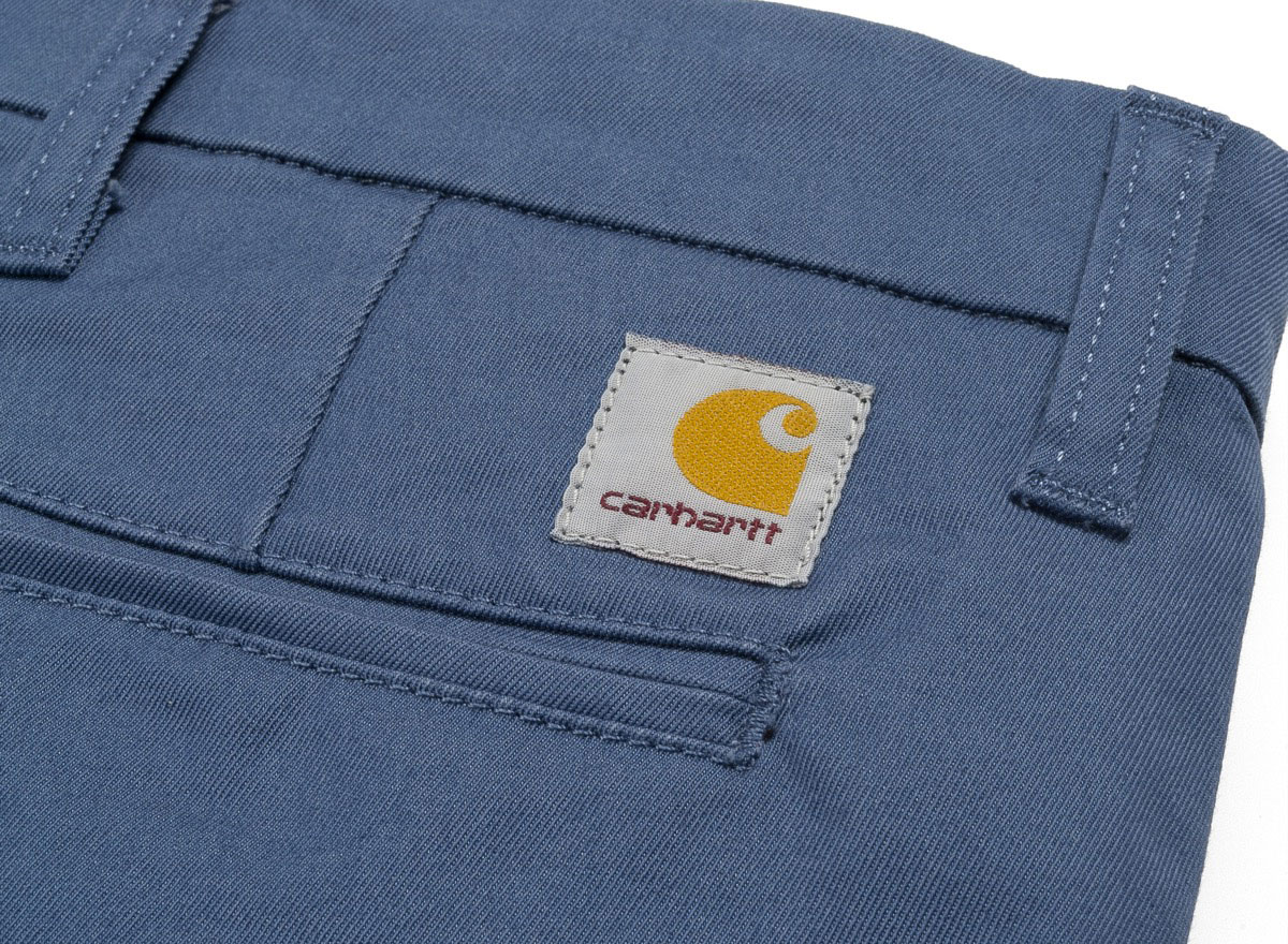 CARHARTT WIP Sid Pant Blue Iris. Chino coupe Slim en Twill 97% Coton / 3% Stretch. Taille basse. Braguette zippée. Deux poches côtés et deux passepoilées à l'arrière. "Square Label" cousu au dos.