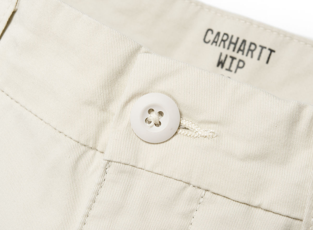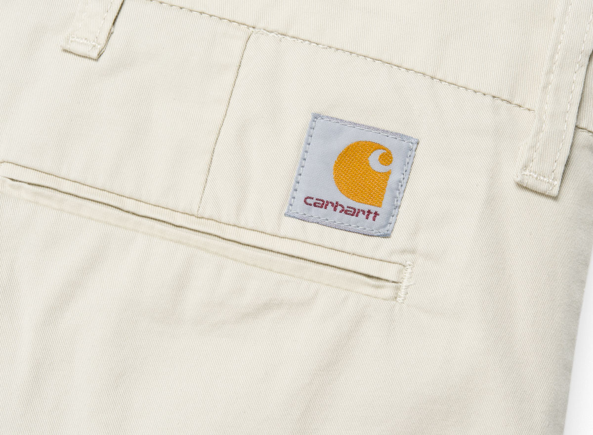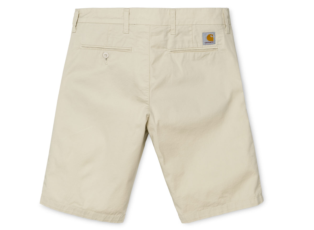 CARHARTT WIP Sid Short Shell. Short chino en twill "Trabuuco" Stretch 6oz. 97% Coton/ 3% Lycra. Coupe slim, taille basse. Coutures de renfort. Étiquette "Square" à l'arrière. Braguette zippée. Deux poches côtés et deux à l'arrière.