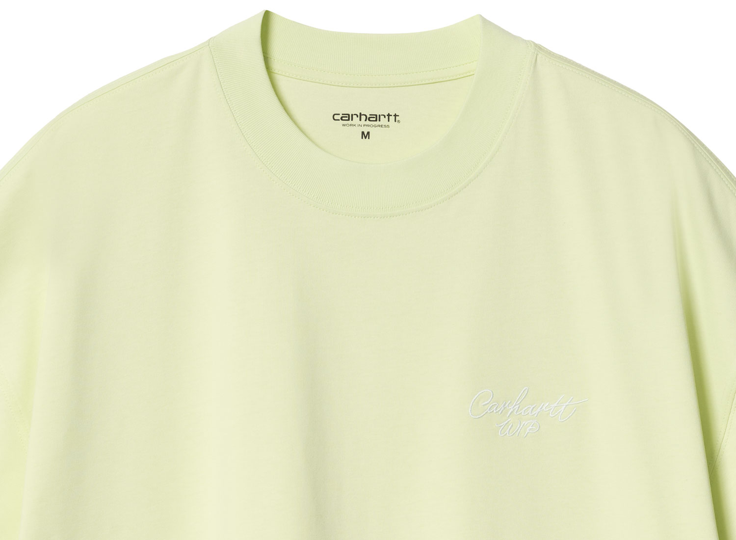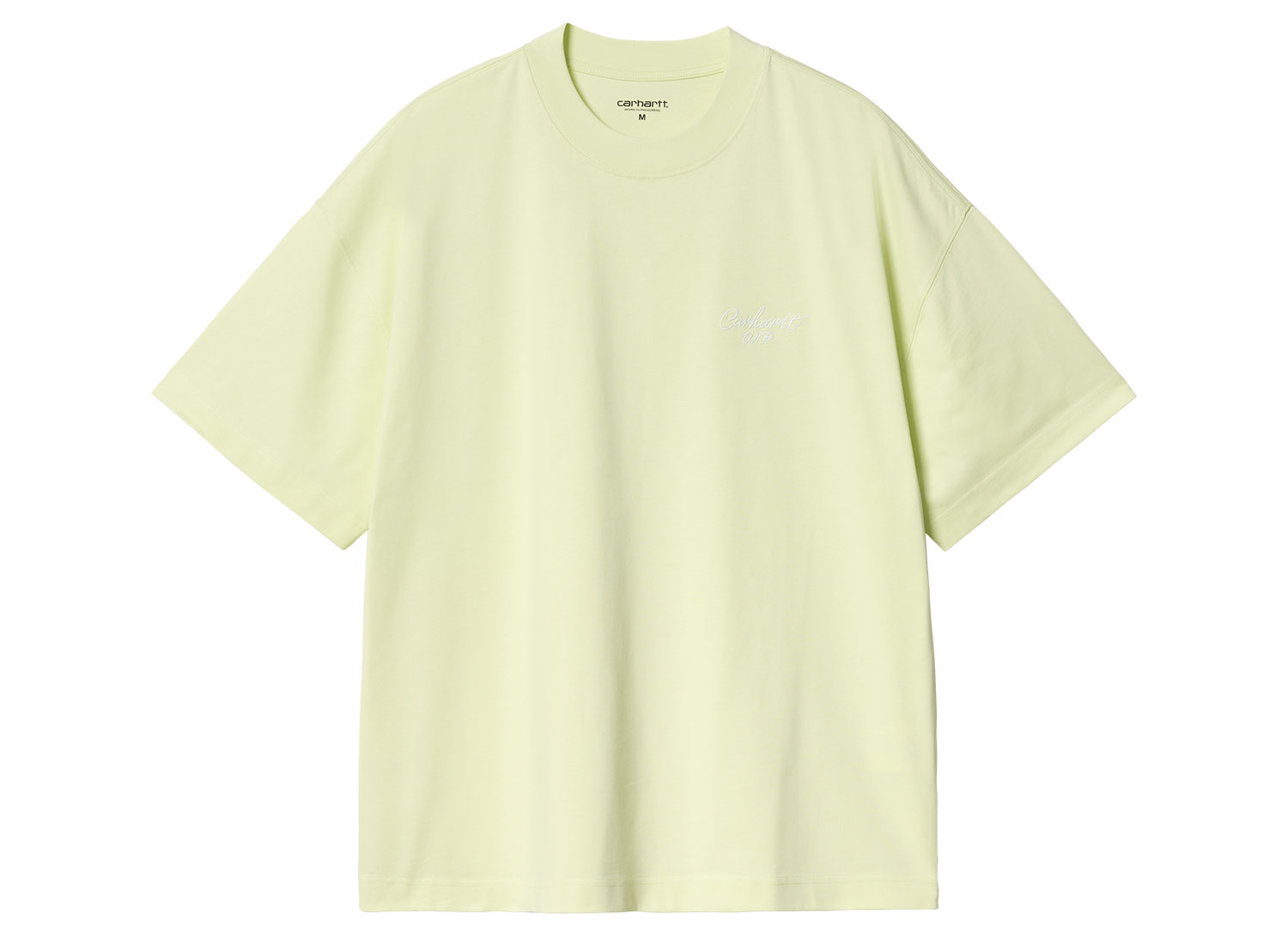 CARHARTT WIP Signature Script Tshirt Air Green / White I033828. Tshirt confectionné en jersey 100% coton biologique semi-épais. Coupe boxy loose. Broderie sur la poitrine.