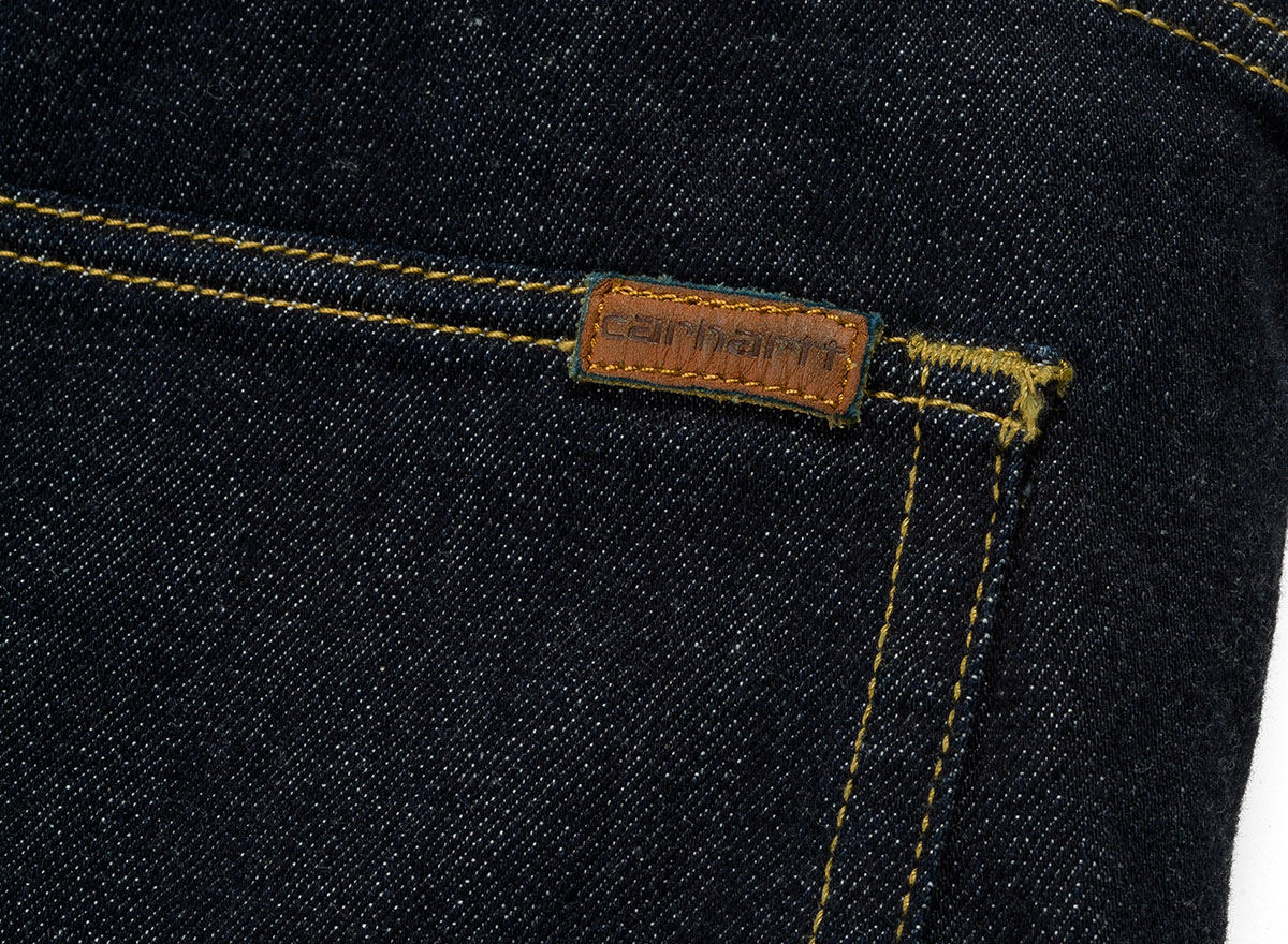 CARHARTT WIP Swell Short Blue Rinsed. Short 5 poches coupe regular en denim 98% coton / 2% Stretch. Braguette zippée. Empiècement dos. Rivets métal ou renforts aux endroits particulièrement sollicités. Étiquette Script en cuir.