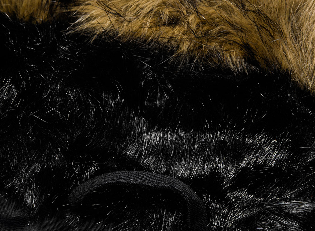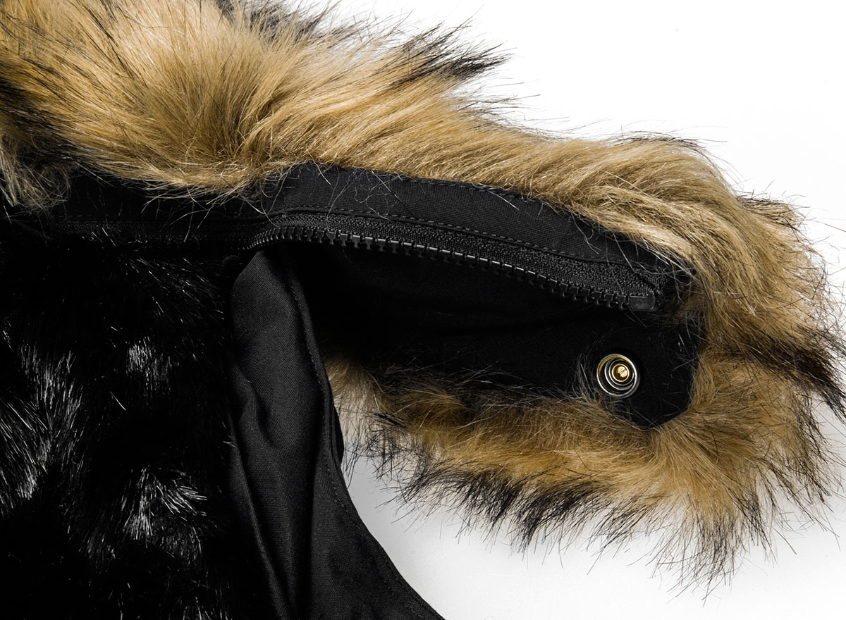 CARHARTT WIP Trapper Parka Black. Très belle parka composée de 65% de polyester et de 35% de coton. Tissu hydrofuge enduit. Doublure en taffetas de nylon. Capuche ajustable fourrée avec bordure en fourrure amovible. Taille et bas ajustables. Poignets coupe-vent côtelés. Empiècements en velours côtelé aux coudes. Étiquette carrée en cuir.
