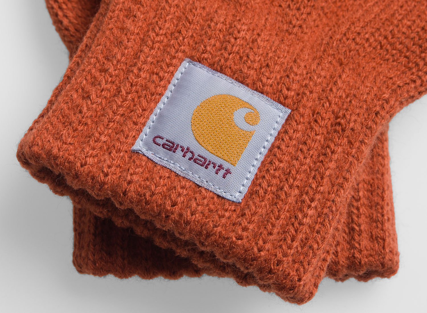 CARHARTT WIP Watch Gloves Cinnamon I021756. 100 % acrylique, calibre 7. Tricot côtelé extensible. Forme anatomique. Etiquette carrée.