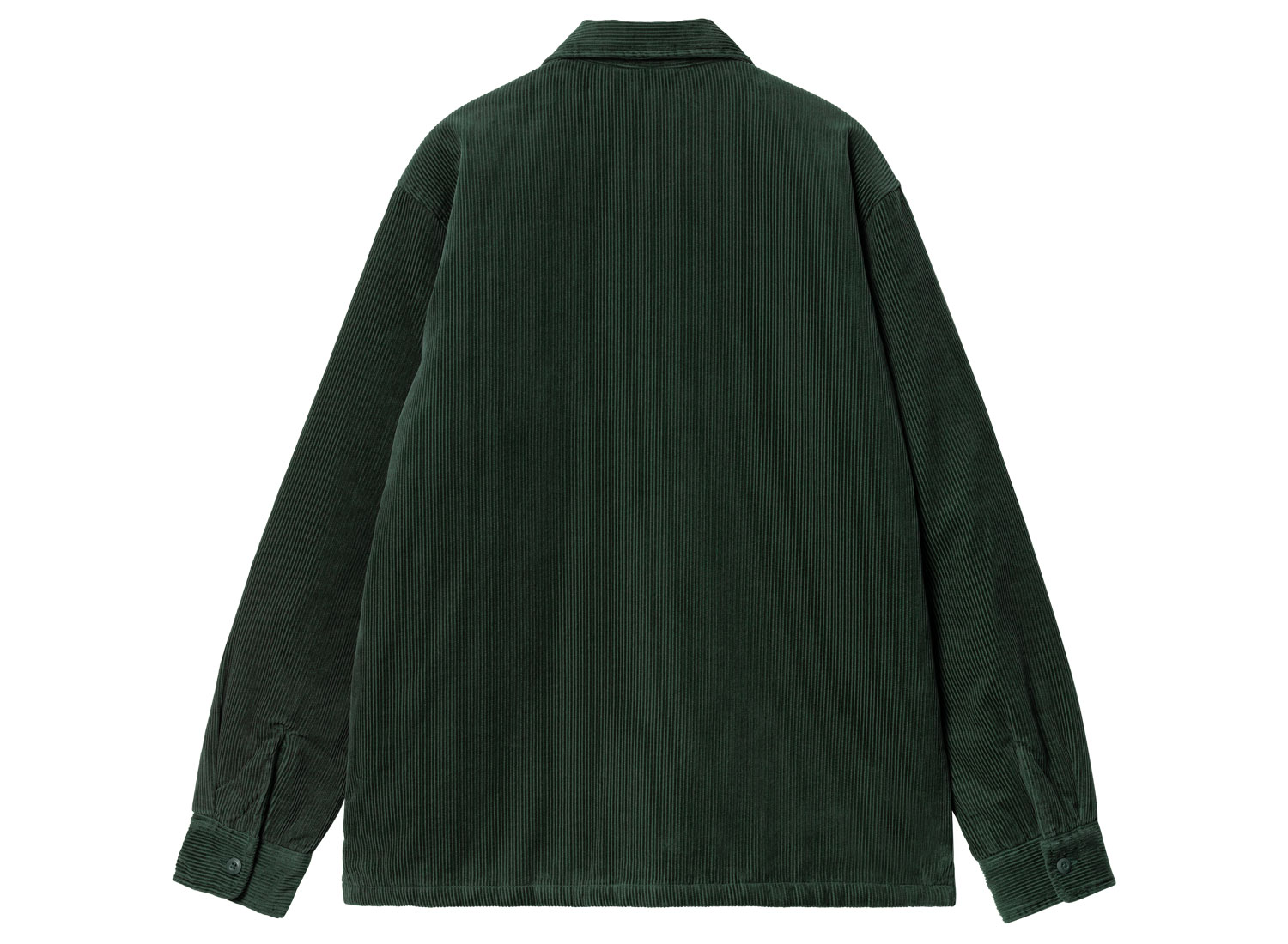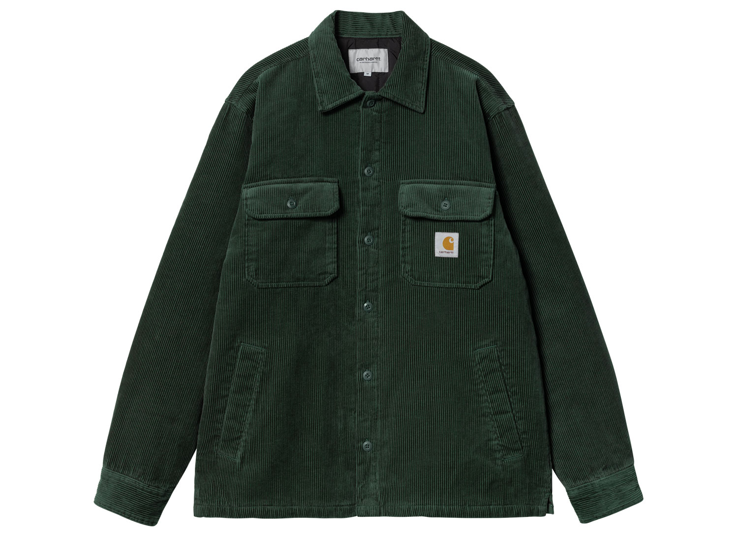 CARHARTT WIP Whitsome Shirt Jac Sycamore Tree I028827. Veste mi-saison d'inspiration workwear en velours côtelé délavé. 100 % coton. Doublure en nylon. Deux poches sur la poitrine. Deux poches passepoilées sur les côtés. Etiquette carrée "Carhartt" sur la poitrine.