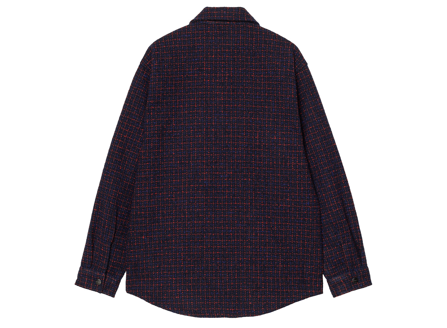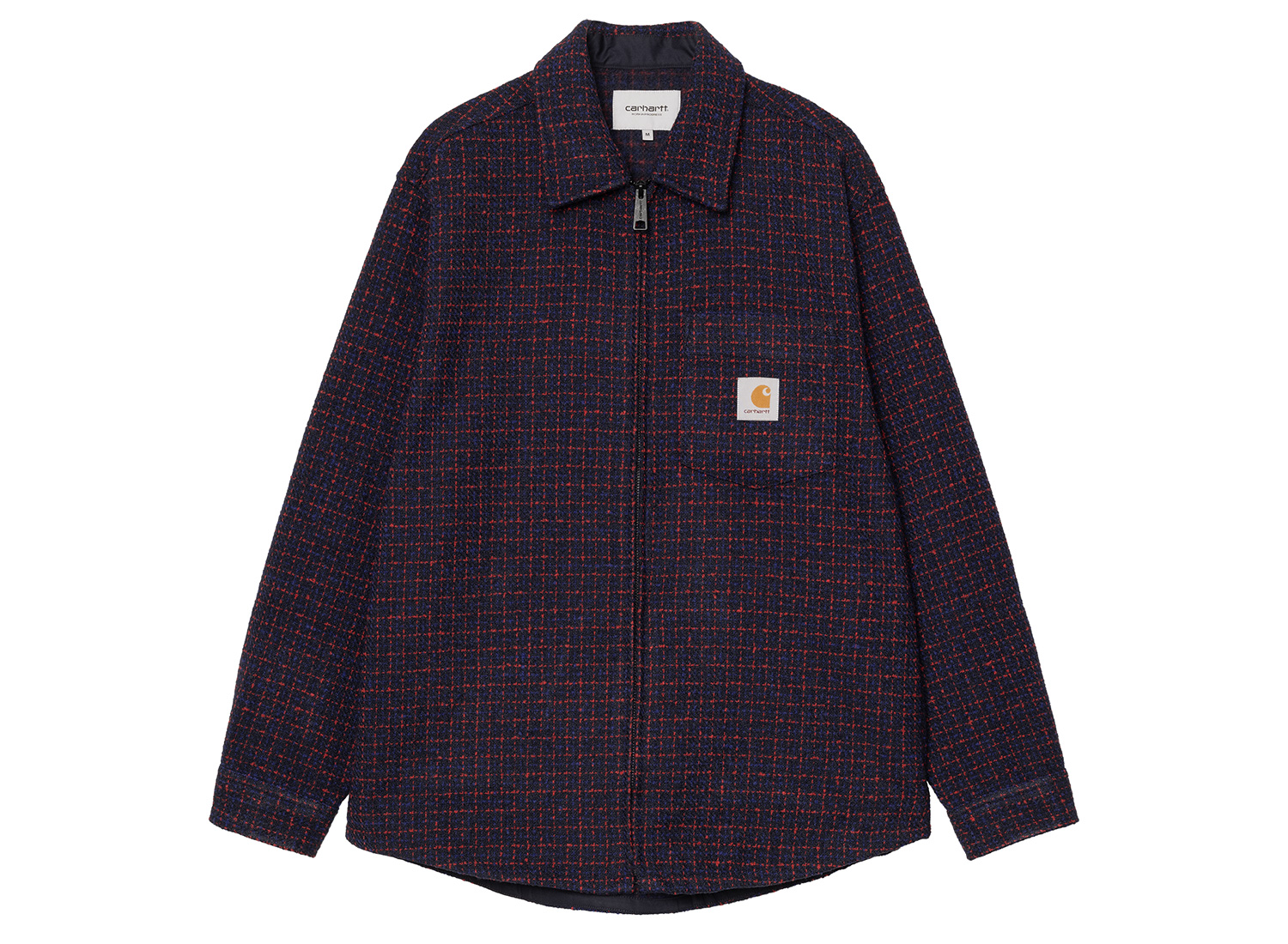 CARHARTT WIP Bellamy Shirt Jac Bellamy Check Deep Night I035422_34R_XX_03. Surchemise à carreaux en polyester bouclé épais. Non doublée. Tissu tissé-teint. Fermeture zippée à double sens avec tirette siglée. Poche poitrine et deux poches latérales. Square Label tissé.