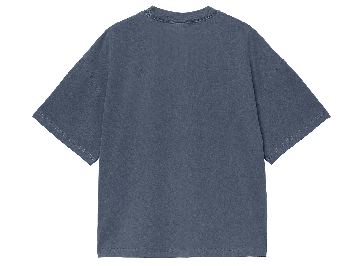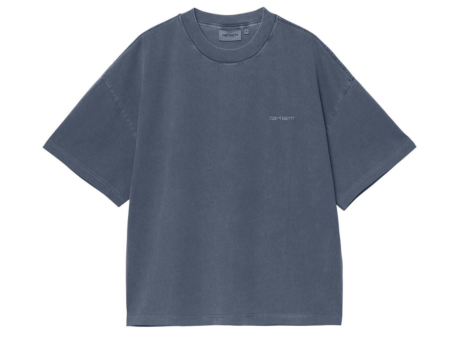 CARHARTT WIP Benton Tshirt Jupiter Garment Dyed I035590_VQ_GD_03. Tshirt manches courtes en jersey 100% coton semi-épais. Coupe loose boxy. Coton teint après confection. Logo Script brodé sur la poitrine. Bord-côte au col.