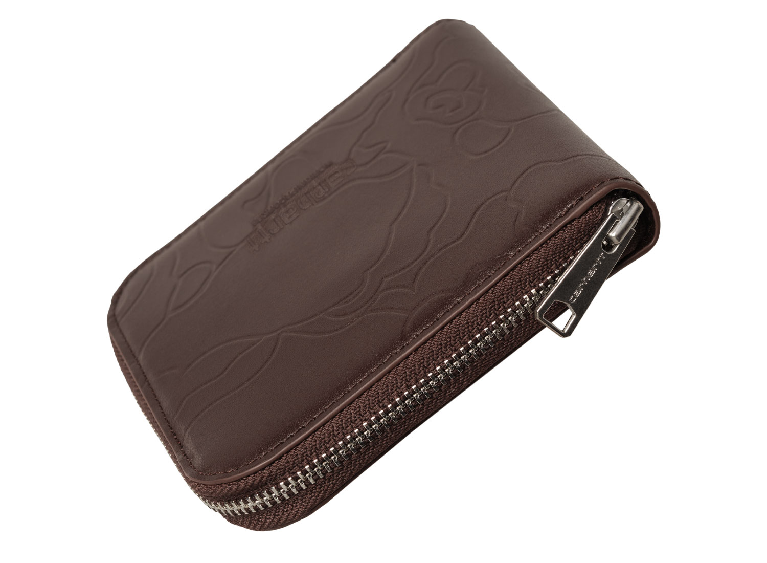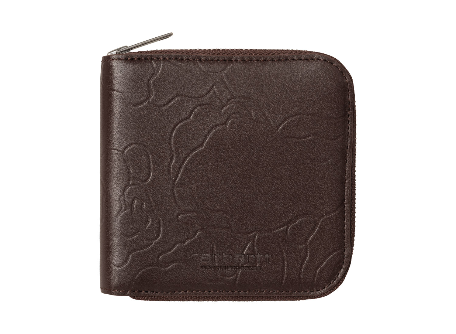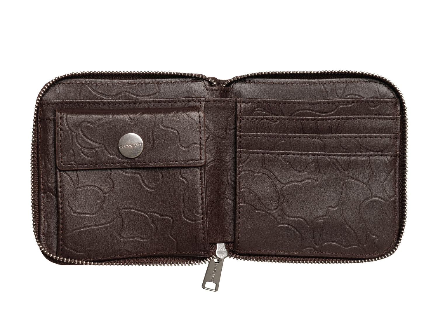 CARHARTT WIP Camo Duck Wallet Palisander / Silver I035402_3BX_XX_06. Portefeuille 100 % cuir de vache. Motif camouflage et logo Script embossés. Compartiment principal zippé, avec pochette pour pièces, 3 fentes pour cartes et compartiment pour billets. Doublure intérieure. Dimensions : 9,5 × 11 cm.