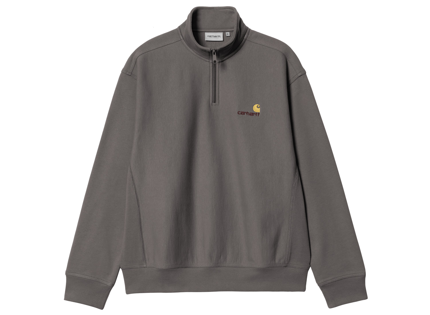 CARHARTT WIP Half Zip American Script Sweat Porphyry I027014_33C_XX. Sweatshirt col zippé confectionné en molleton épais et confortable. 80% coton / 20% Polyester. Coupe ample. Bords-côtes aux poignets et sur le bas. broderie américaine.