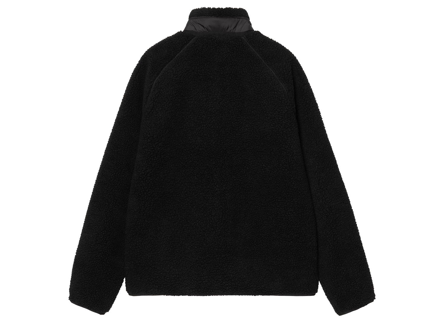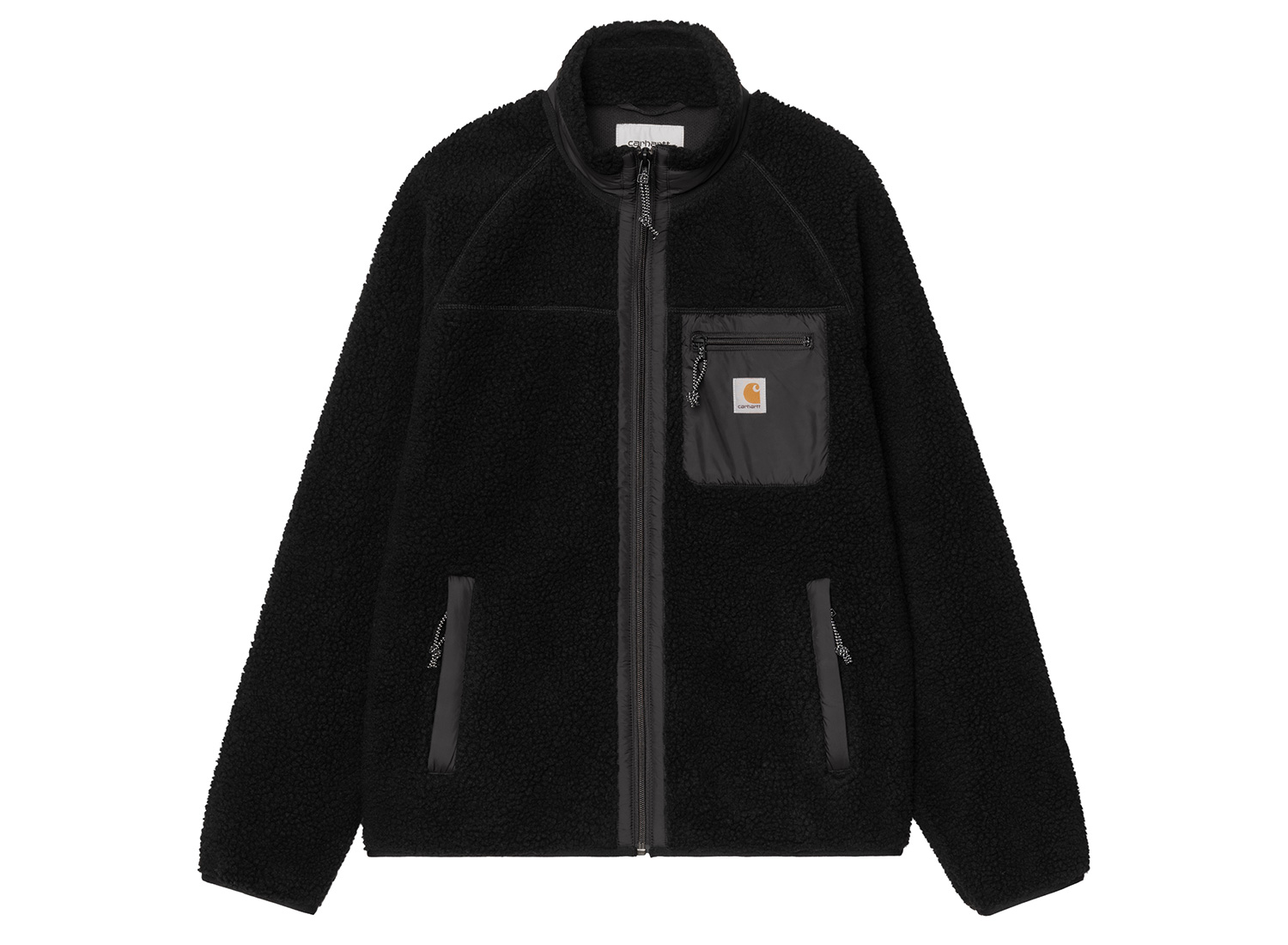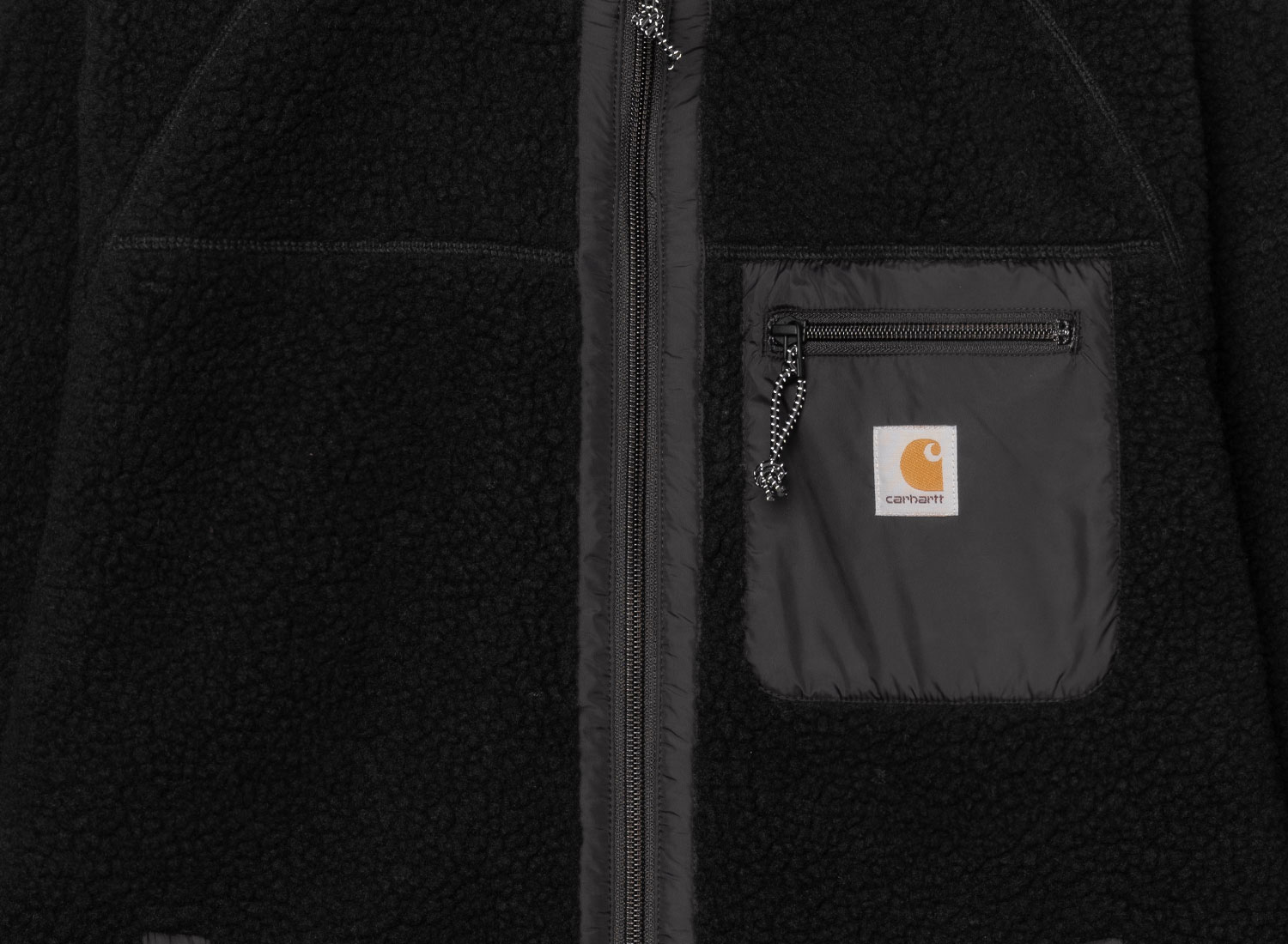 CARHARTT WIP Prentis Liner Black / Black I035696.00E.XX.03. Polaire épaisse 100 % polyester, 10,3 oz. Coupe droite. Doublure en filet. Détails en taffetas de nylon. Fermeture à l'avant, poches latérales et poche de poitrine zippée. Étiquette carrée.