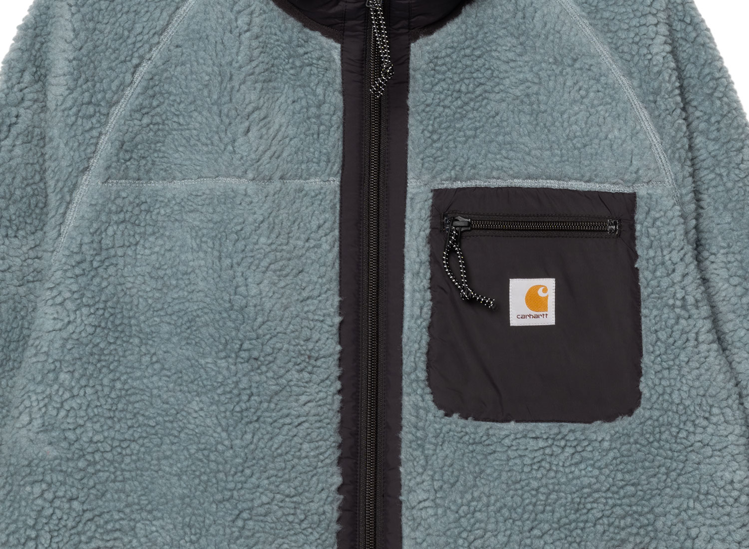 CARHARTT WIP Prentis Liner Citadel / Black I035696.3B7.XX.03. Polaire épaisse 100 % polyester, 10,3 oz. Coupe droite. Doublure en filet. Détails en taffetas de nylon. Fermeture à l'avant, poches latérales et poche de poitrine zippée. Étiquette carrée.