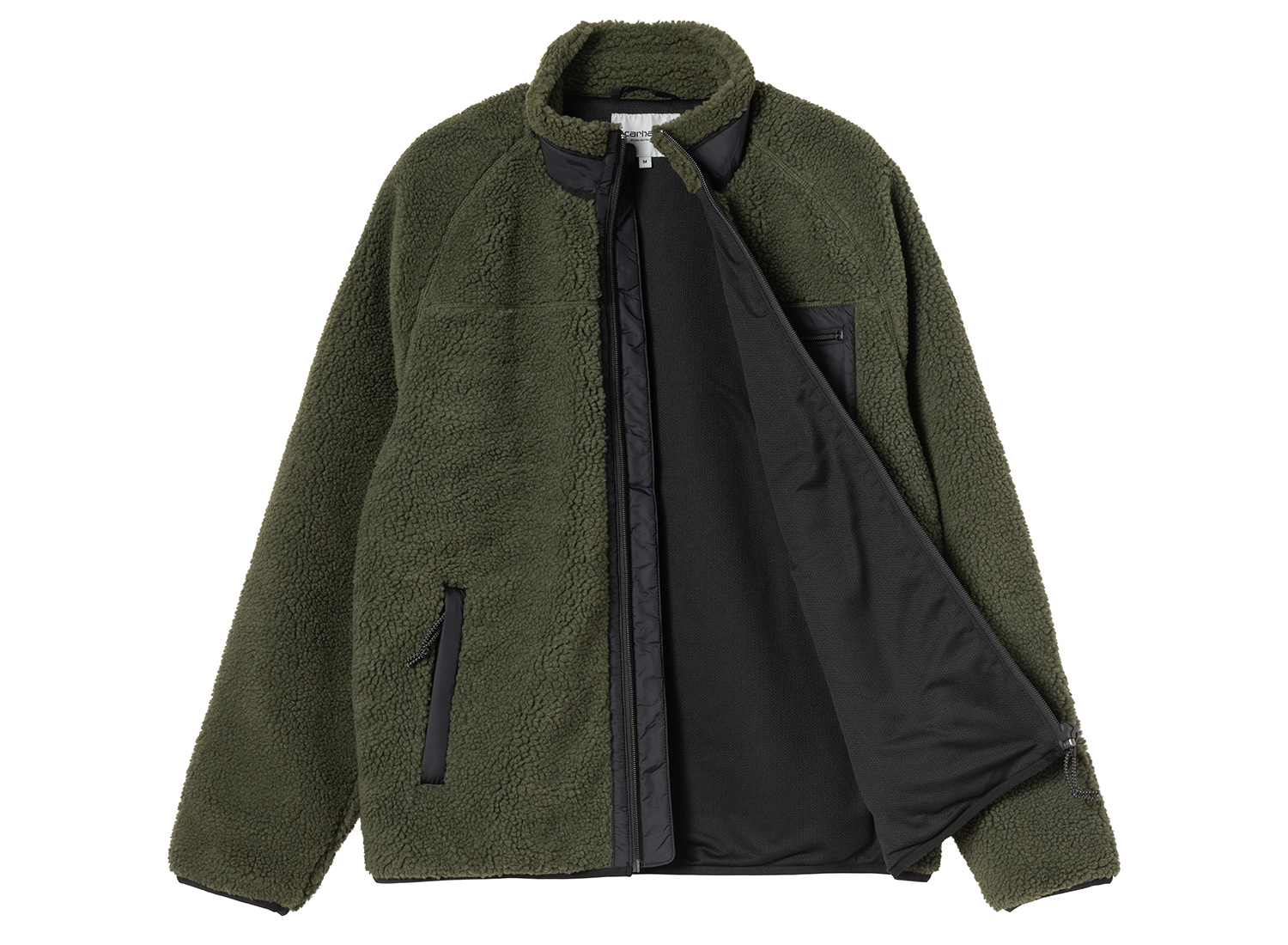 CARHARTT WIP Prentis Liner Opuntia / Black I035696_32Y_XX_03. Polaire épaisse 100 % polyester, 10,3 oz. Coupe droite. Doublure en filet. Détails en taffetas de nylon. Fermeture à l'avant, poches latérales et poche de poitrine zippée. Étiquette carrée.