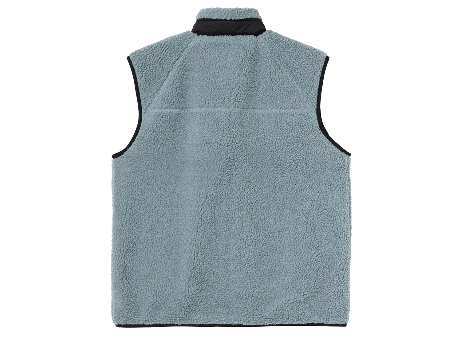 CARHARTT WIP Prentis Vest Liner Citadel / Black I035698_3B7_XX_03. Gilet sans manche coupe regular confectionné dans une polaire Sherpa épaisse 100% polyester. Fermeture zippée. Doublure filet mesh. Poches zippées sur le bas et la poitrine. Détails en nylon. Square Label sur la poche poitrine.