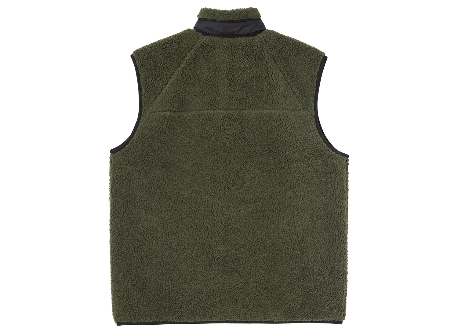 CARHARTT WIP Prentis Vest Liner Opuntia / Black I035698_32Y_XX_03. Gilet sans manche coupe regular confectionné dans une polaire Sherpa épaisse 100% polyester. Fermeture zippée. Doublure filet mesh. Poches zippées sur le bas et la poitrine. Détails en nylon. Square Label sur la poche poitrine.
