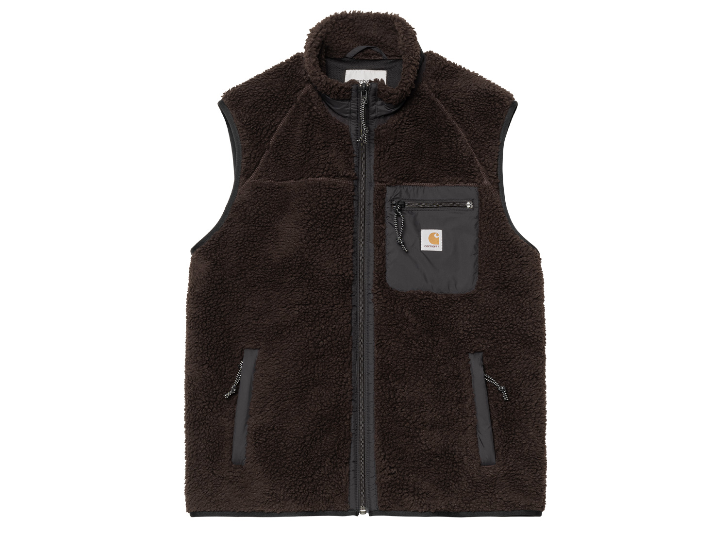 CARHARTT WIP Prentis Vest Liner Palisander / Black I035698_3AN_XX_03. Gilet sans manche coupe regular confectionné dans une polaire Sherpa épaisse 100% polyester. Fermeture zippée. Doublure filet mesh. Poches zippées sur le bas et la poitrine. Détails en nylon. Square Label sur la poche poitrine.