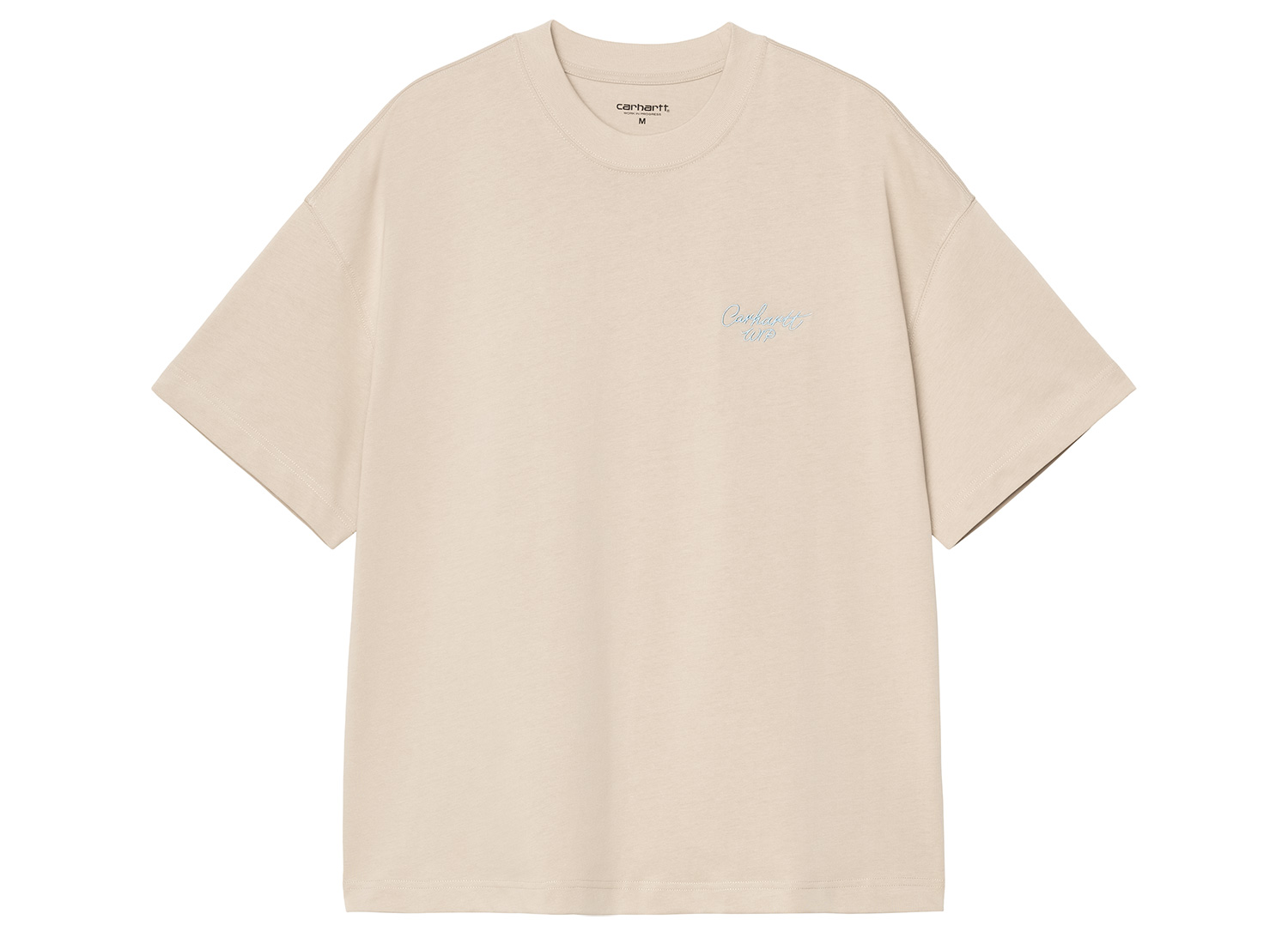 CARHARTT WIP Signature Script Tshirt Fleur De Sel / Citadel I033828_38Q_XX_03. Tshirt confectionné en jersey 100% coton biologique semi-épais. Coupe boxy loose. Broderie sur la poitrine.