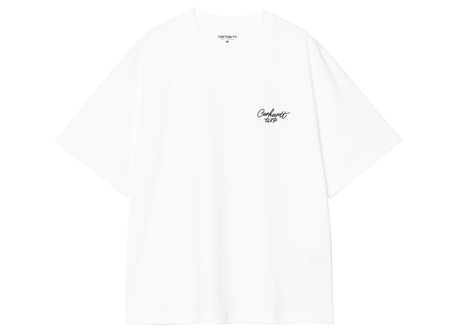 CARHARTT WIP Signature Script Tshirt White / Black I033828_00A_XX_03. Tshirt confectionné en jersey 100% coton biologique semi-épais. Coupe boxy loose. Broderie sur la poitrine.