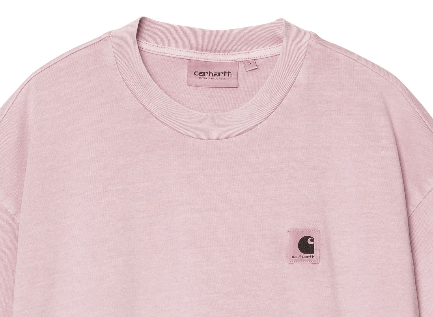 CARHARTT WIP Women Nelson Tshirt Hortensia I033051. T-shirt pour femme est confectionné en jersey de coton léger. 100 % coton biologique. Coupe loose et cropped. Tissu Teint. Square Label teinté.