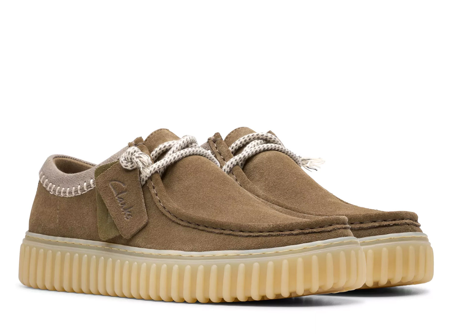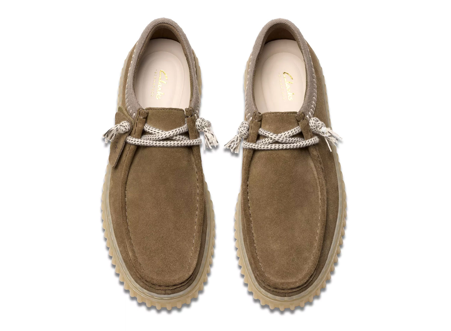 CLARKS Torhill Lo Dark Olive Combi 26180905. Empeigne en daim premium. Semelle intérieure en cuir Contour Cushion moulée et amovible. Semelle extérieure en TR (caoutchouc thermoplastique) durable et nervurée avec remplissage en EVA pour une traction légère. Deux paires de lacets.