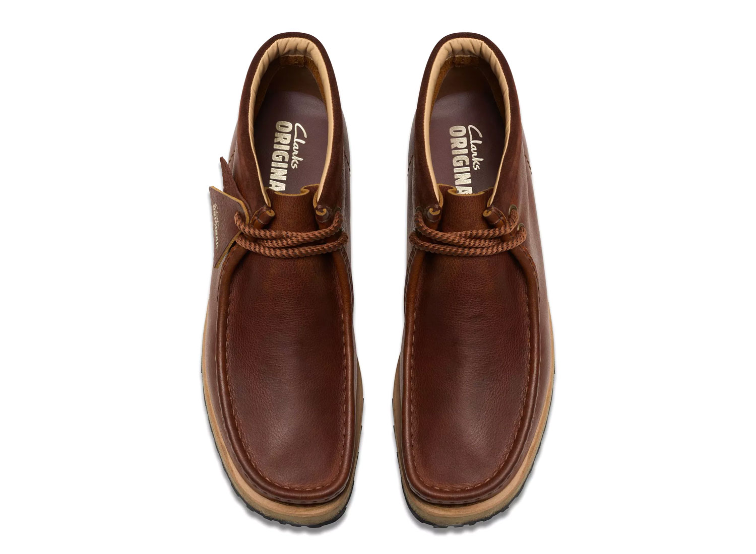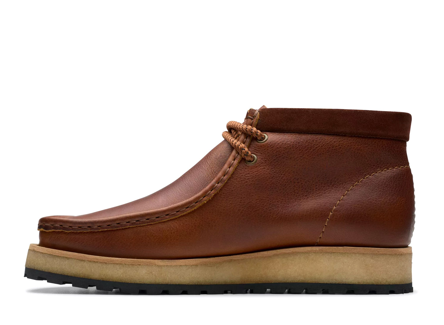 CLARKS Wallabee Scout Dark Tan. Jolie version Outdoor de la Wallabee. Tige premium en cuir marron foncé. Structure de mocassin. Le col en mousse douce offre un confort durable autour de la cheville. Semelle intermédiaire en crêpe signature. Lacets d'inspiration outdoor. Semelle extérieure crantée en caoutchouc durable.
