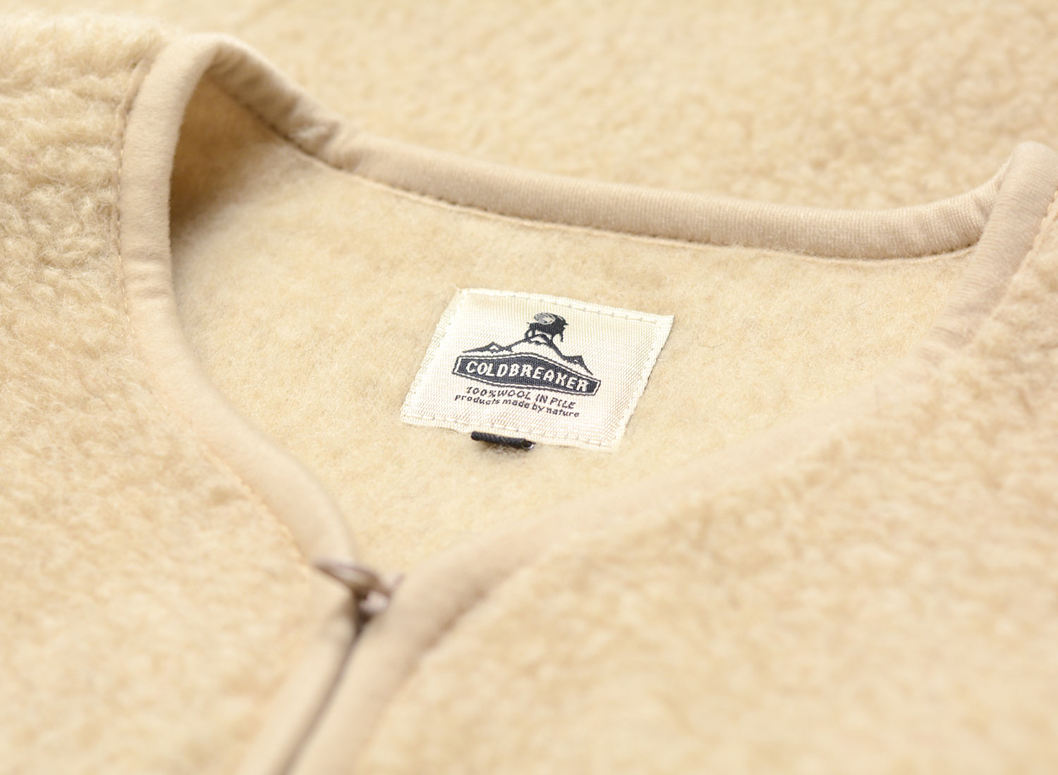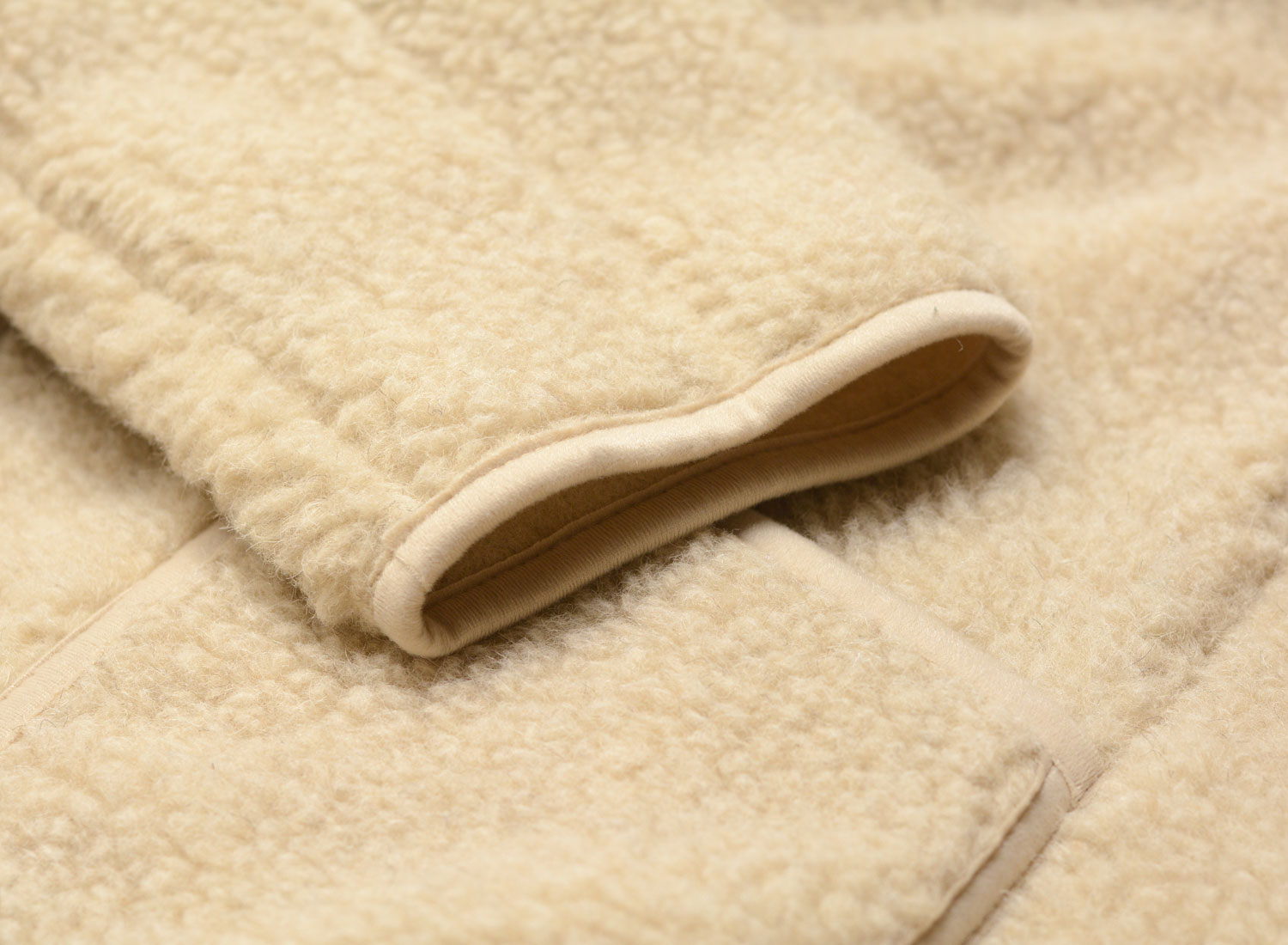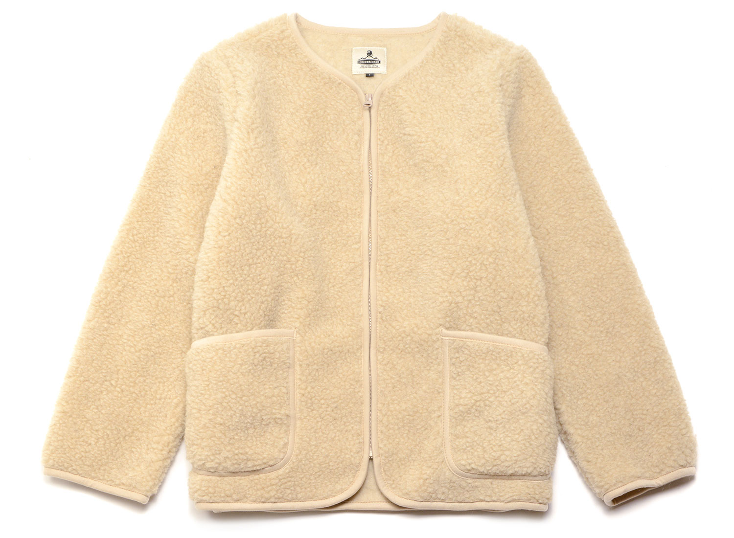 COLDBREAKER Cardigan Nordeen Beige. Cardigan coupe "box fit" confectionné dans une sherpa 100% laine de la maison Irlandaise YOKO spécialiste en la matière. Fermeture zippée. Poches plaquées sur le bas. Bords gansés.