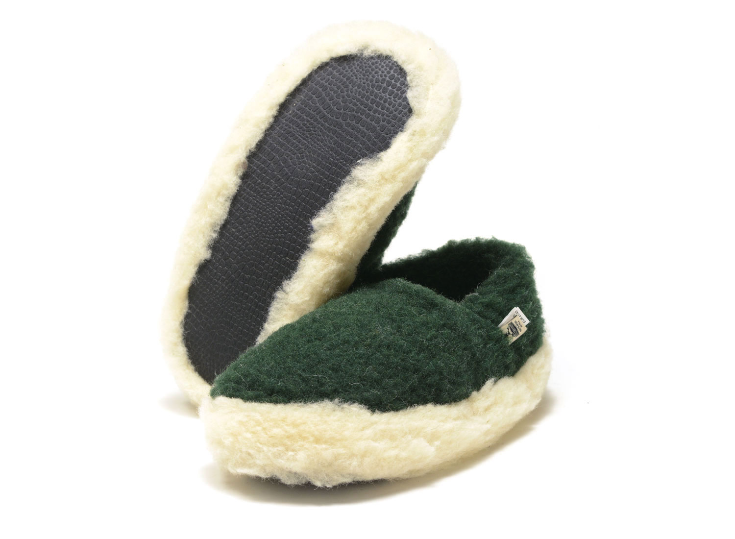 COLDBREAKER Slipper Siberian Dark Green. Chaussons en sherpa 100% laine de la maison Irlandaise YOKO spécialiste en la matière. Semelle antidérapante.