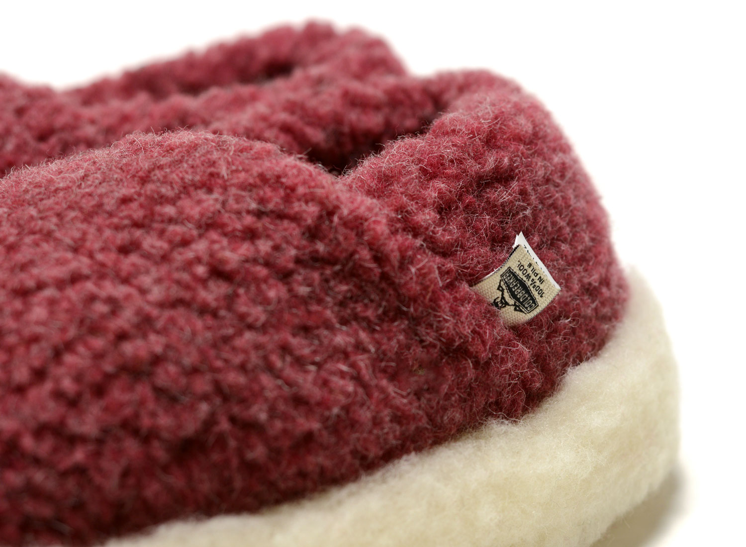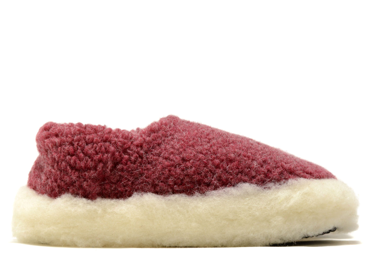 COLDBREAKER Slipper Siberian Dark Red. Chaussons en sherpa 100% laine de la maison Irlandaise YOKO spécialiste en la matière. Semelle antidérapante.