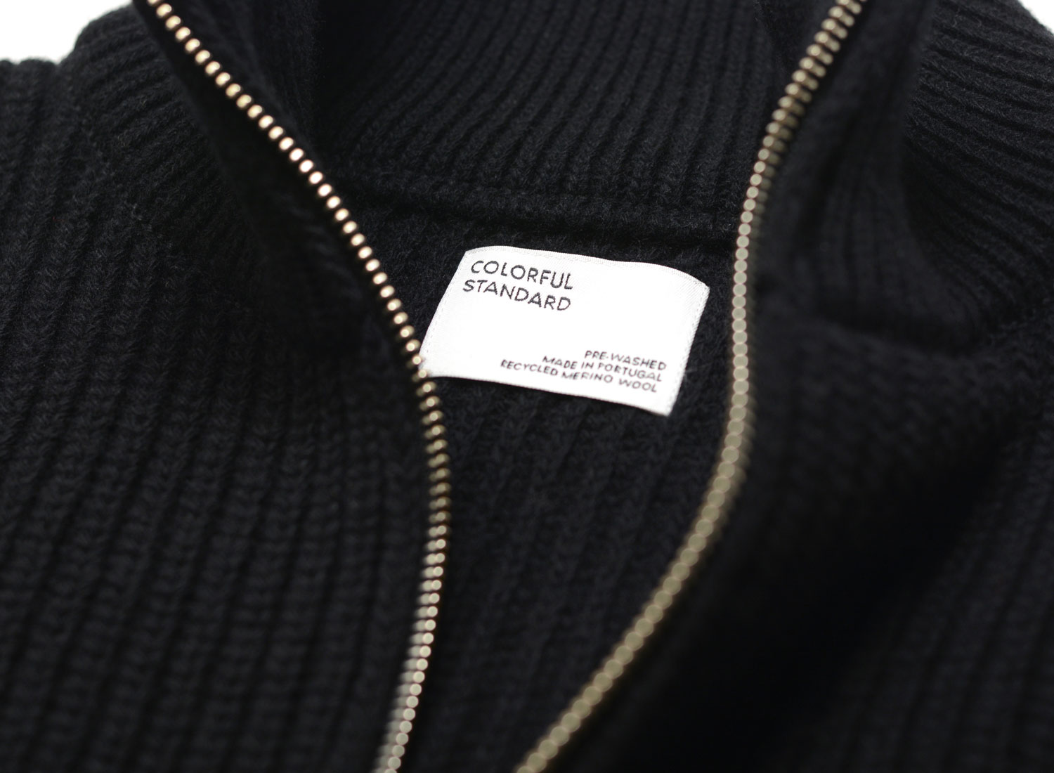 COLORFUL STANDARD Merino Quarter Zip Black. Pull col zippé confectionné en maille 100% laine mérinos. Coupe droite. Bords-côtes au col, aux poignets et sur le bas. Fil Woolmark. Pré-lavé. Fabriqué au Portugal.