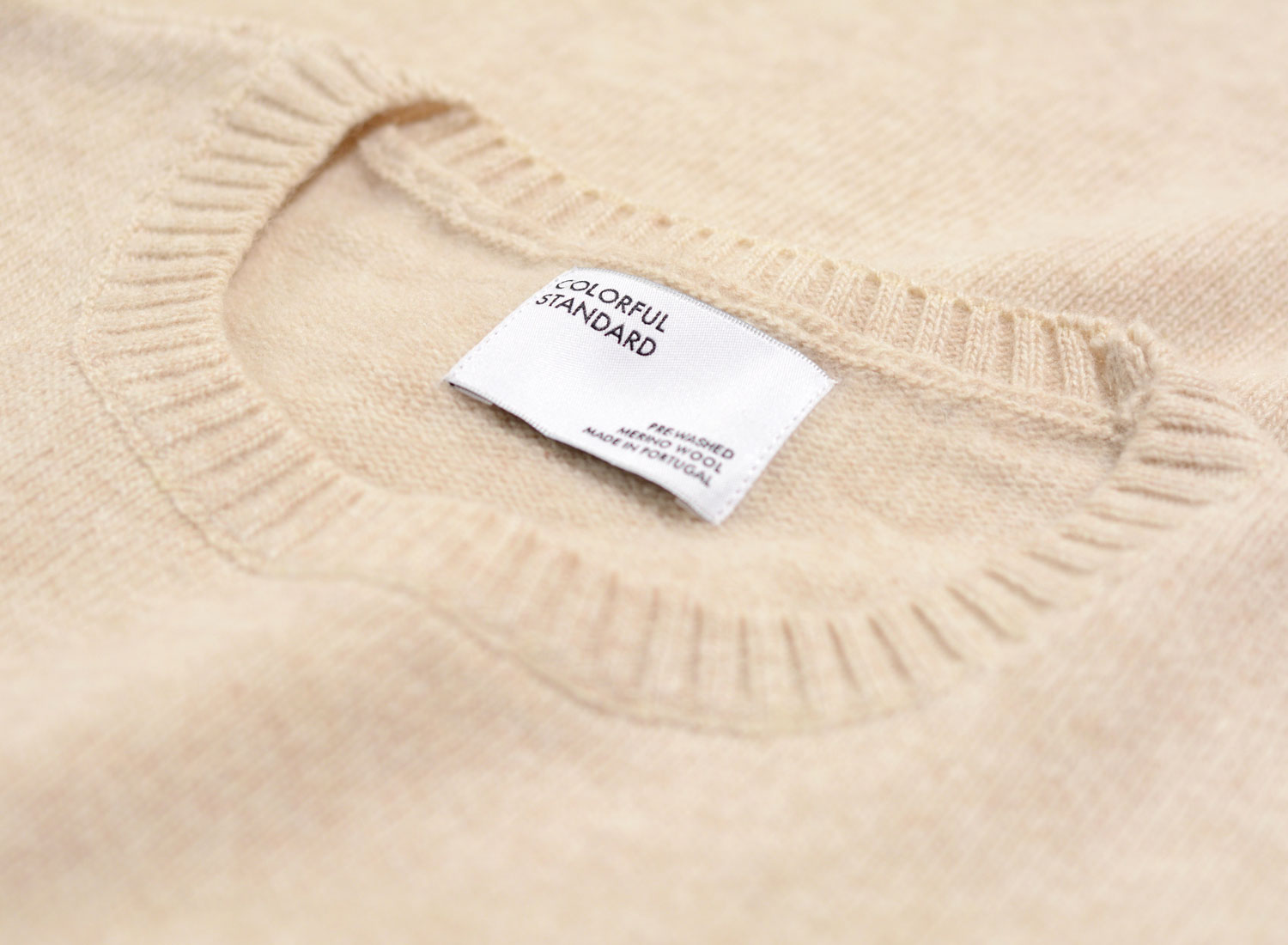 COLORFUL STANDARD Merino Wool Crew Ivory White. Pull col rond confectionné en maille 100% laine mérinos. Coupe droite. Bords-côtes au col, aux poignets et sur le bas. Fil Woolmark. Pré-lavé. Fabriqué au Portugal.