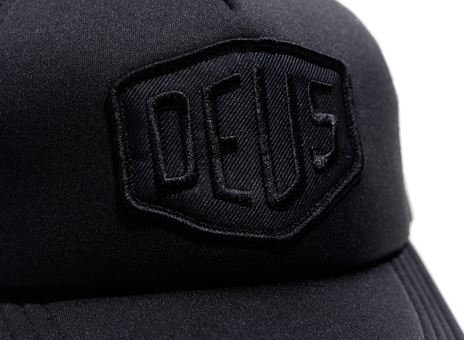 DEUS EX MACHINA Baylands Trucker Black. Casquette à filet réglable. Logo brodé sur l'avant.