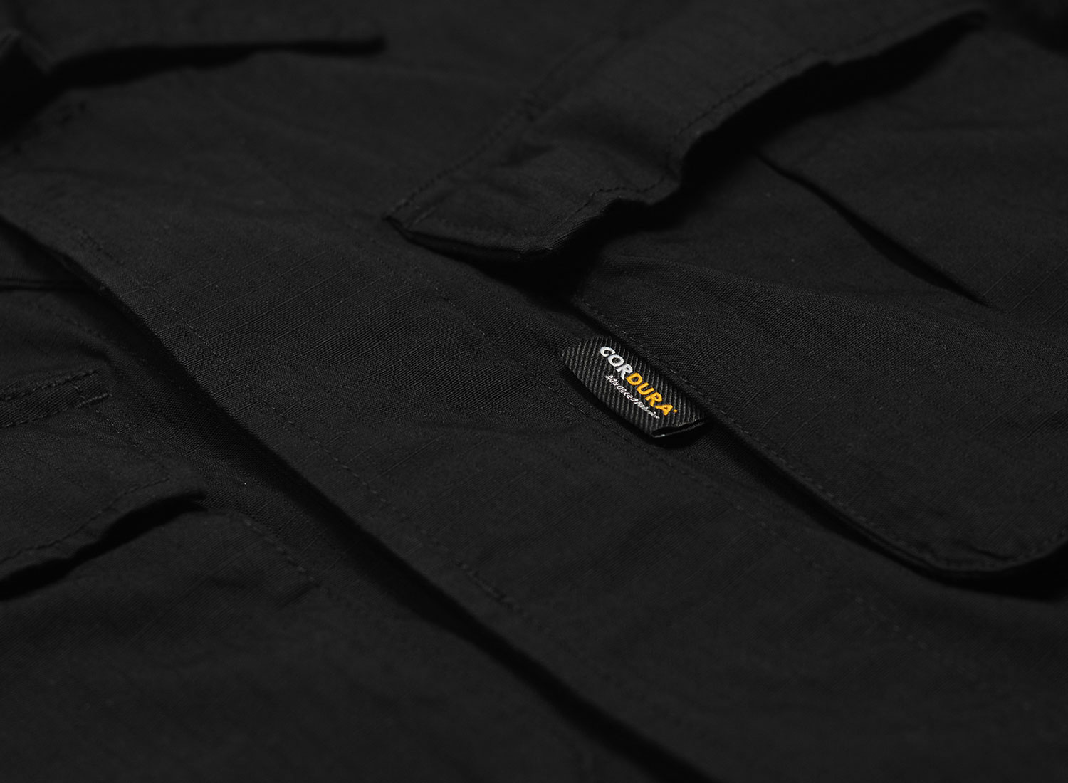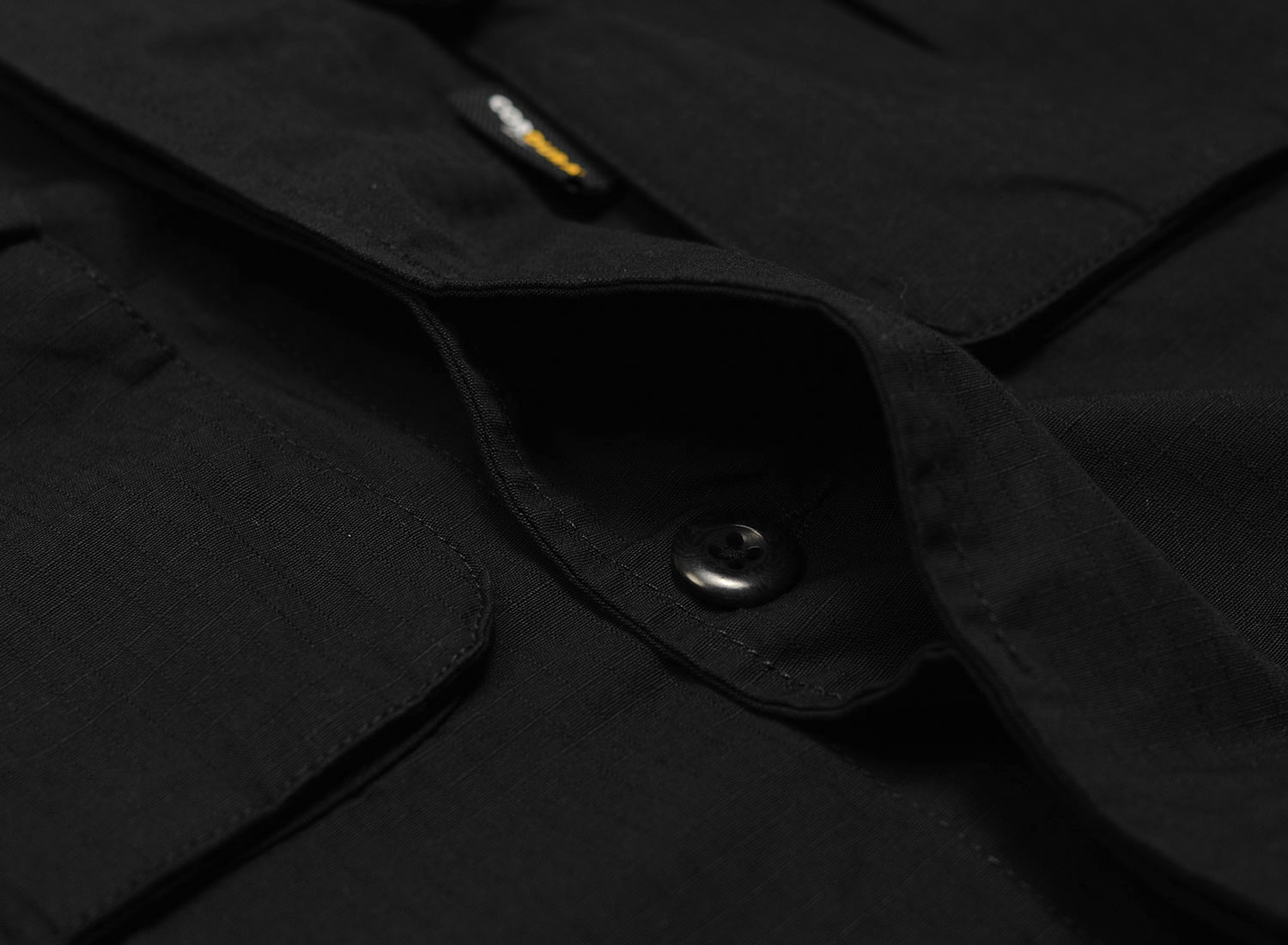 DEUS EX MACHINA OG 107 Cordura Shirt Anthracite. Veste d'inspiration militaire coupe regular confectionnée dans un tissu Ripstop CORDURA. 75% coton / 25% Polyamide. Fermeture boutonnée. Boutonnière cachée. 4 poches à rabats boutonnés sur l'avant. Poignets ajustables par patte de serrage.
