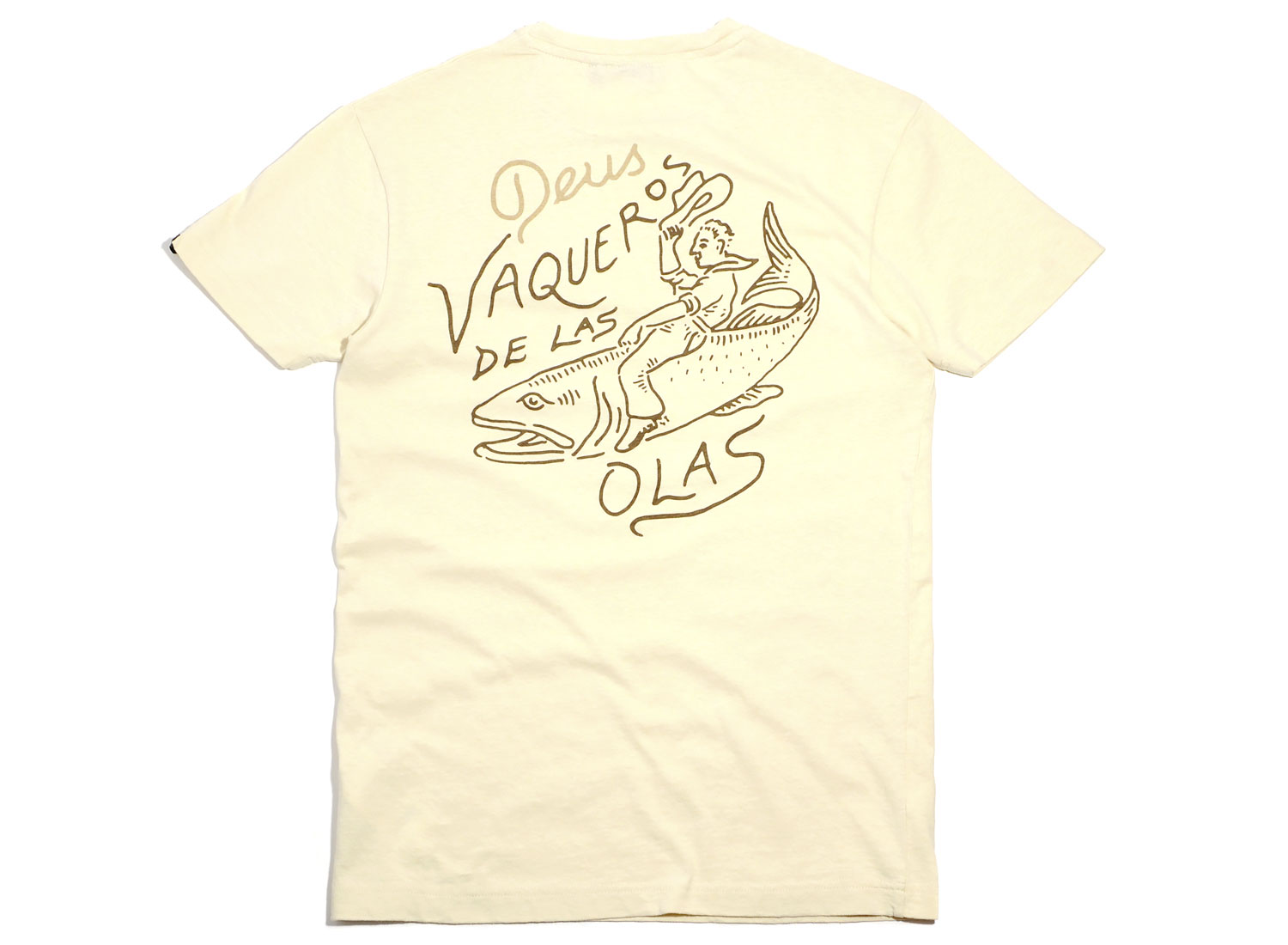 DEUS EX MACHINA Ola Tee Offwhite. T-Shirt col rond 100% coton. Coupe droite. Impression poitrine et au dos.