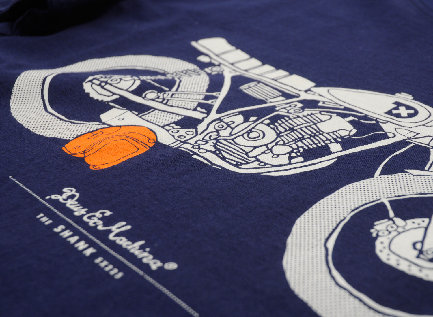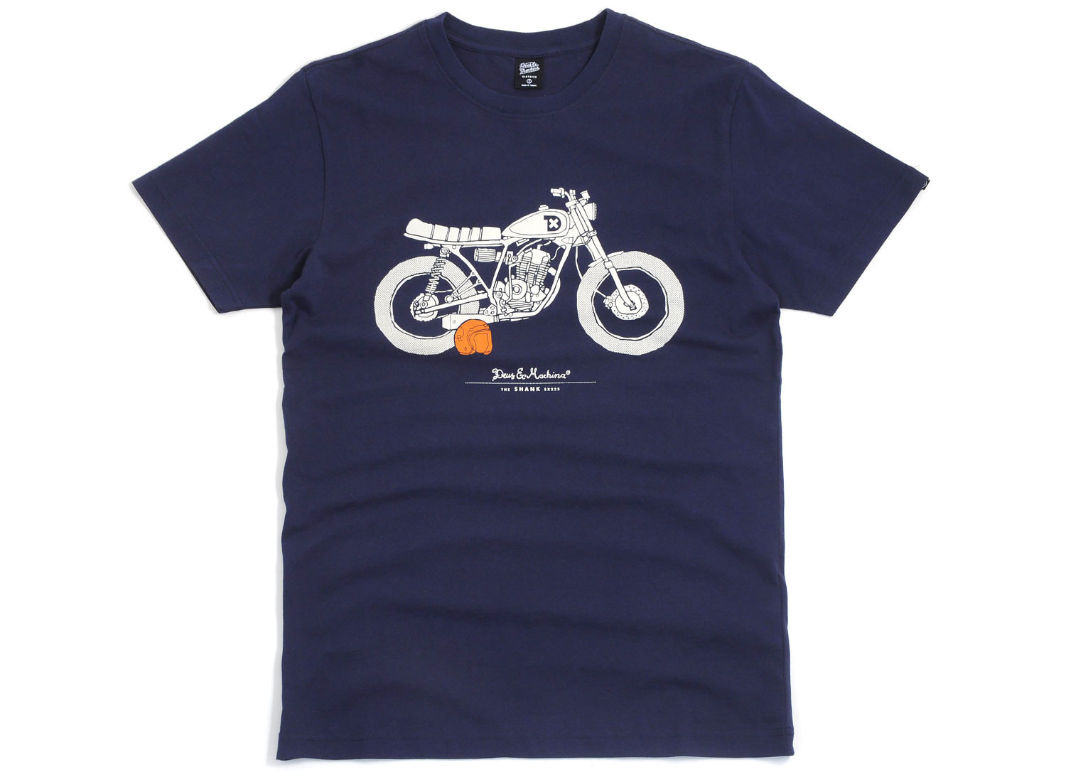 DEUS EX MACHINA The Shank Navy. T-shirt manches courtes 100% coton. Coupe droite. Impression sur l'avant et au dos.