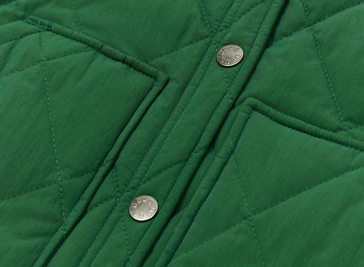 DEUS EX MACHINA Women Shakedown Vest Hillside Green. Gilet sans manches pour femme matelassé. Coupe regular. Extérieur 100% cotton. Doublure 100% polyester. Remplissage 100% polyester "Thinsulate 3M". Boutons pressions sur l'avant. Deux grandes poches sur le bas. Une poche intérieure passepoilée.