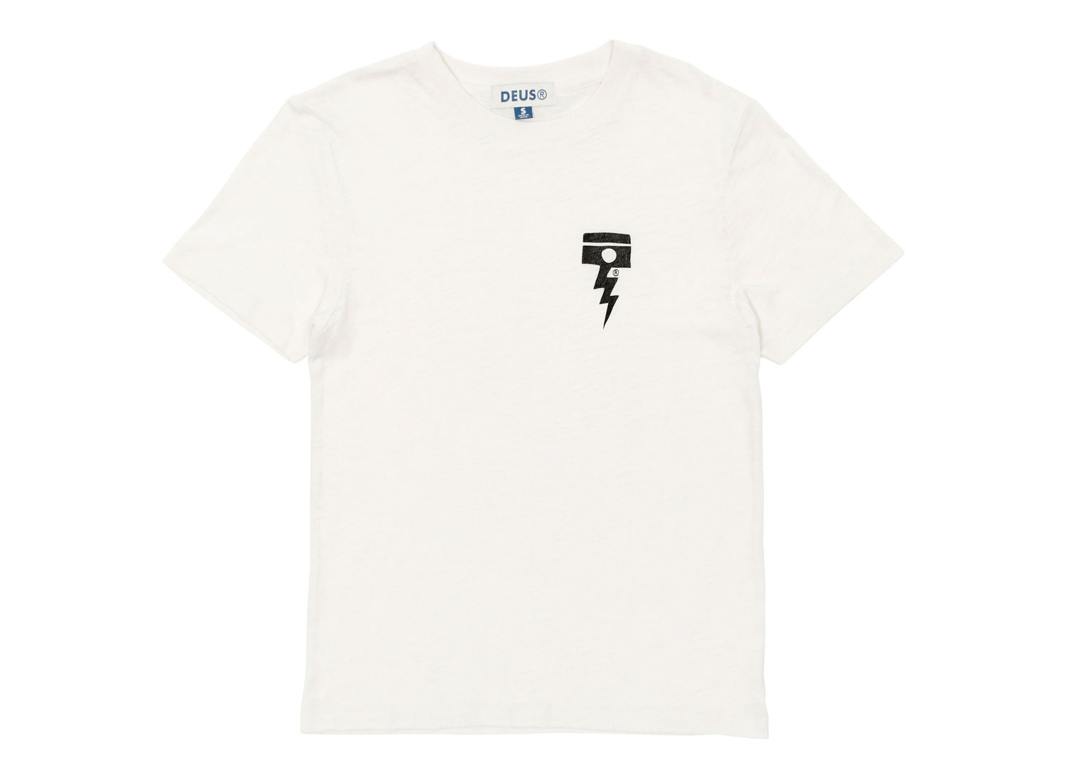 DEUS EX MACHINA Women Shots Fired Tee Dirty White. T-shirt à manches courtes. Coupe regular. 100% coton flammé recyclé. Bords côtes au col. Impression sur la poitrine.