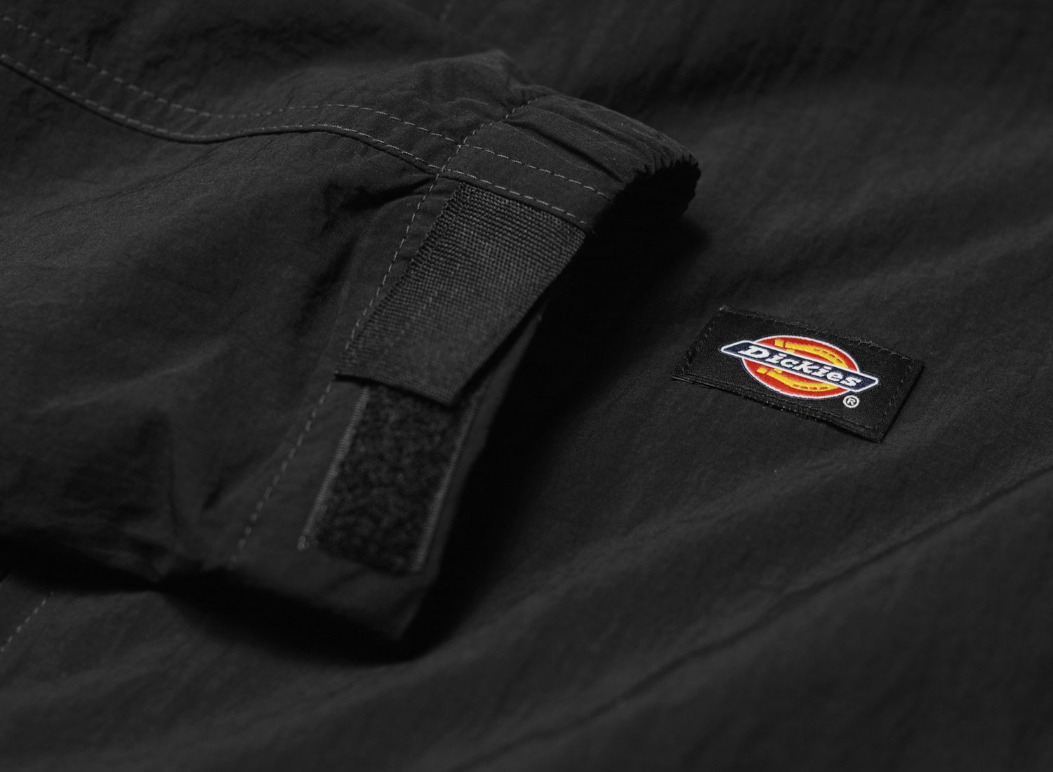 DICKIES Jackson Jacket Black DK0A4Y6XBLK. Veste coupe vent à capuche coupe regular 100% polyamide léger et respirant. Doublure en nylon. Fermeture zippée. Poches à l’avant et sur la manche. Capuche réglable. Poignets élastiqués et bas ajustable. Étiquette Dickies cousue sur la poitrine.