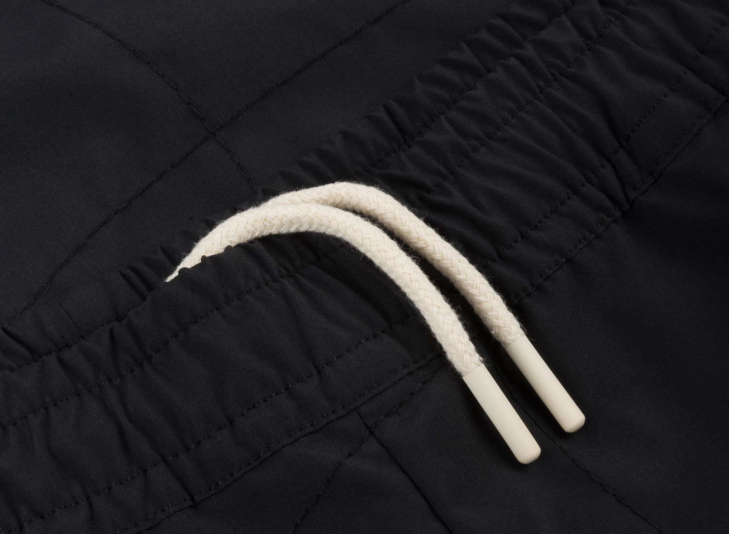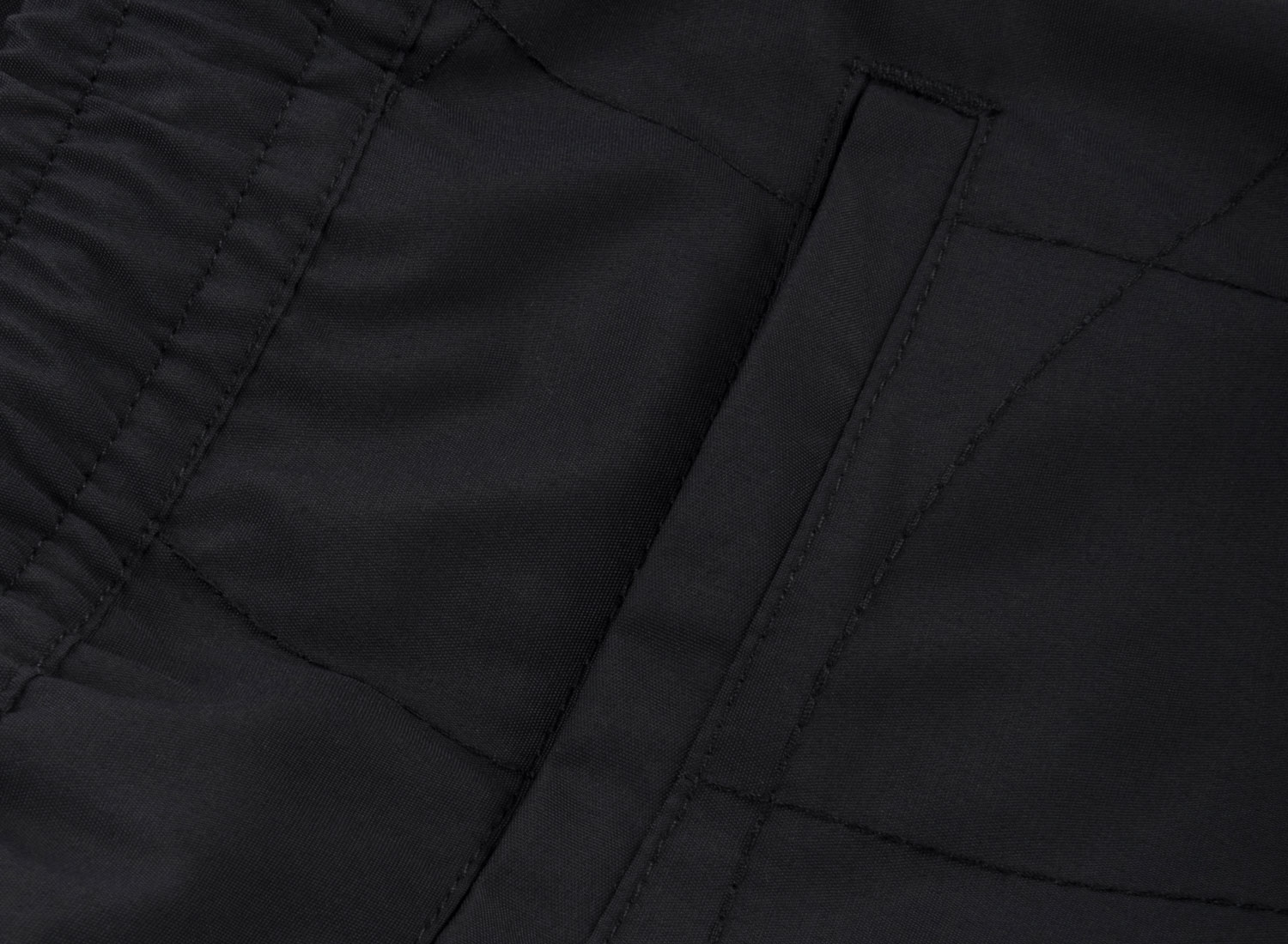 DIME Wave Quilted Shorts Black. Short à motif ondulé en surpiqûre sur toute la surface, 100% polyester. Poches plaquées sur les cotés. Poche passepoilée à l'arrière. Taille élastiquées avec cordon de serrage. Fentes latérales. Logo brodé sur le genou.