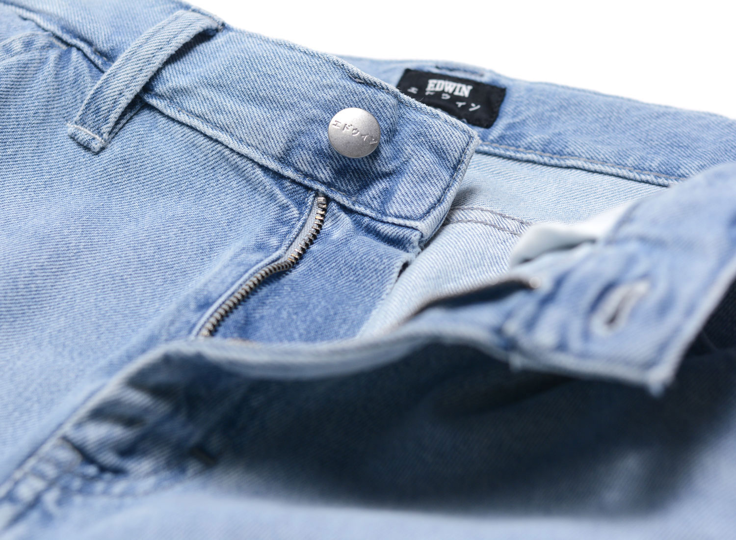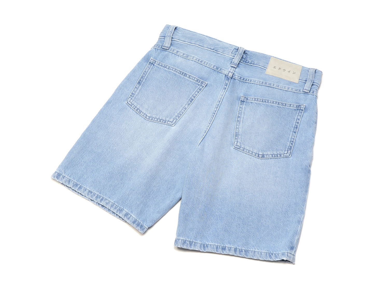 EDWIN Bridger Short Blue Dad Wash I033427. Short coupe décontractée 5 poches confectionné en denim 100% coton. Braguette zippée. Patch cuir.