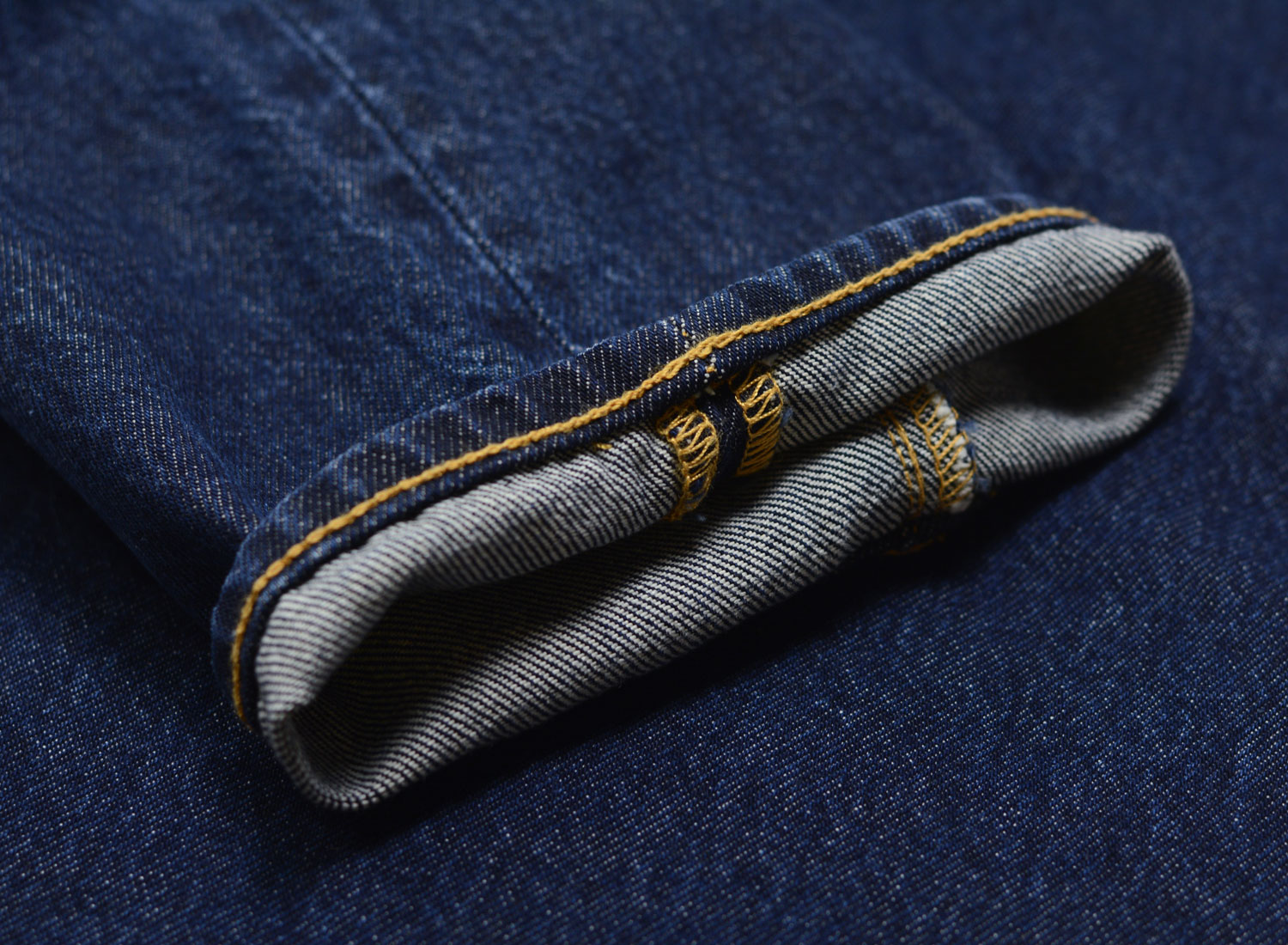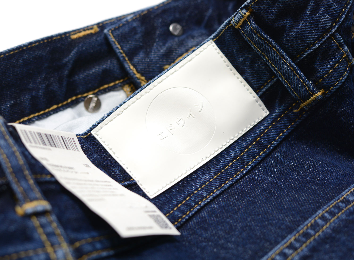 EDWIN Cosmos Pant Arctic Blue I032556. Pants 5 poches confectionné dans un denim délavé 100% coton. Coupe carotte. Longueur cheville (cropped). Braguette zippée. Patch cuir.