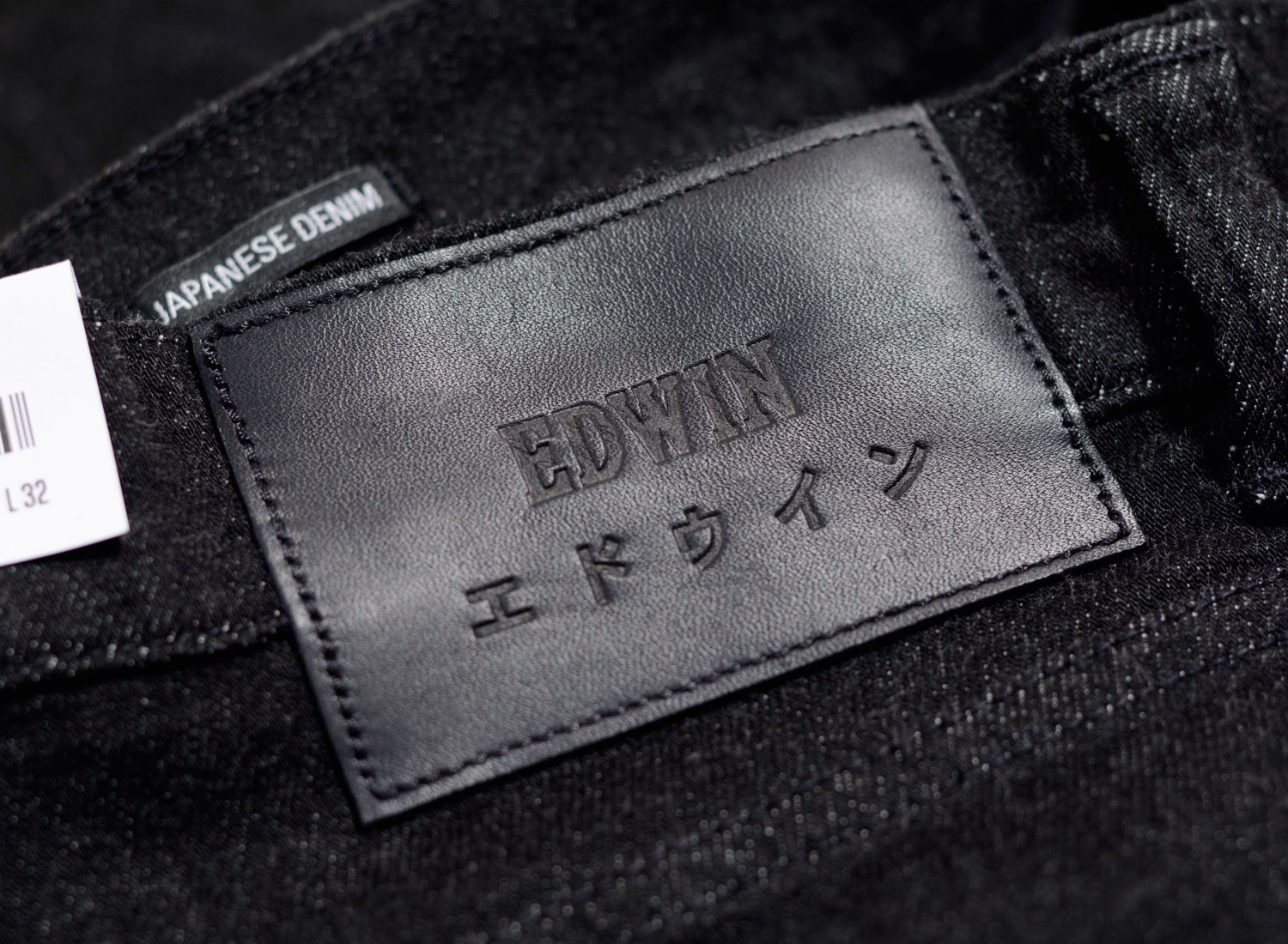 EDWIN ED-80 CS Ayano Black Denim Rinsed. Coupe slim carotte en denim 11,5oz 98% coton / 2% Élasthanne. Boutons et rivets silver. Coutures ton sur ton. Braguette zippée. Patch cuir.