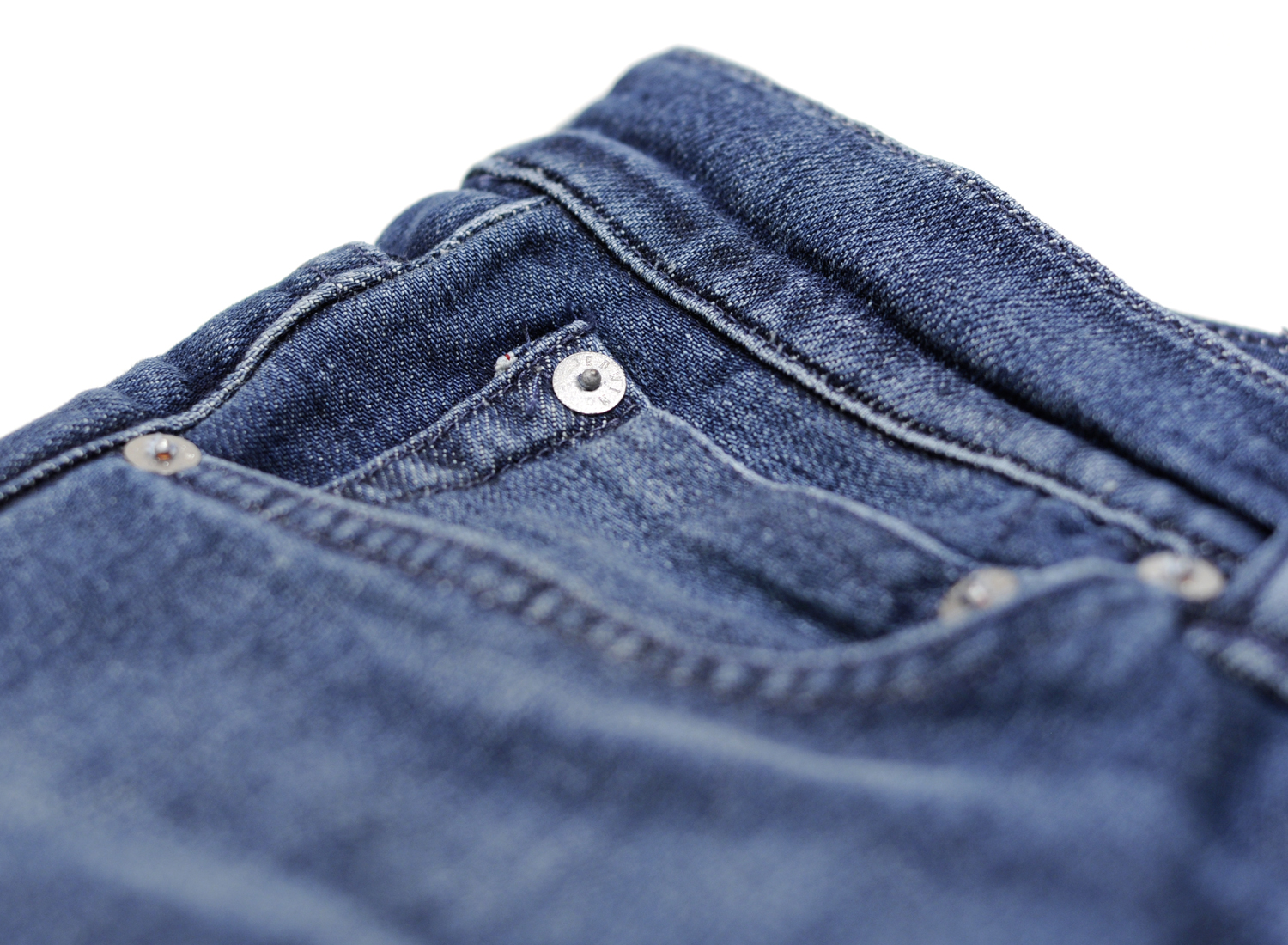 EDWIN ED-80 CS Red Listed Blue Denim Blue Mission Wash. Coupe slim carotte en denim Selvedge 11,5oz 98% coton / 2% Élasthanne. Boutons et rivets silver. Coutures ton sur ton. Braguette zippée. Patch cuir.