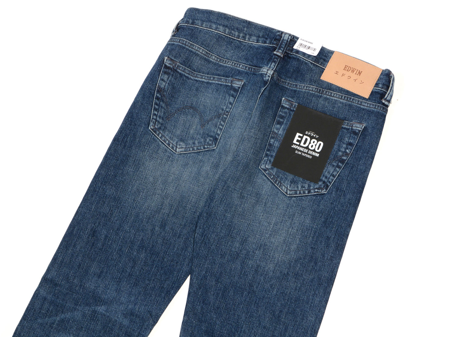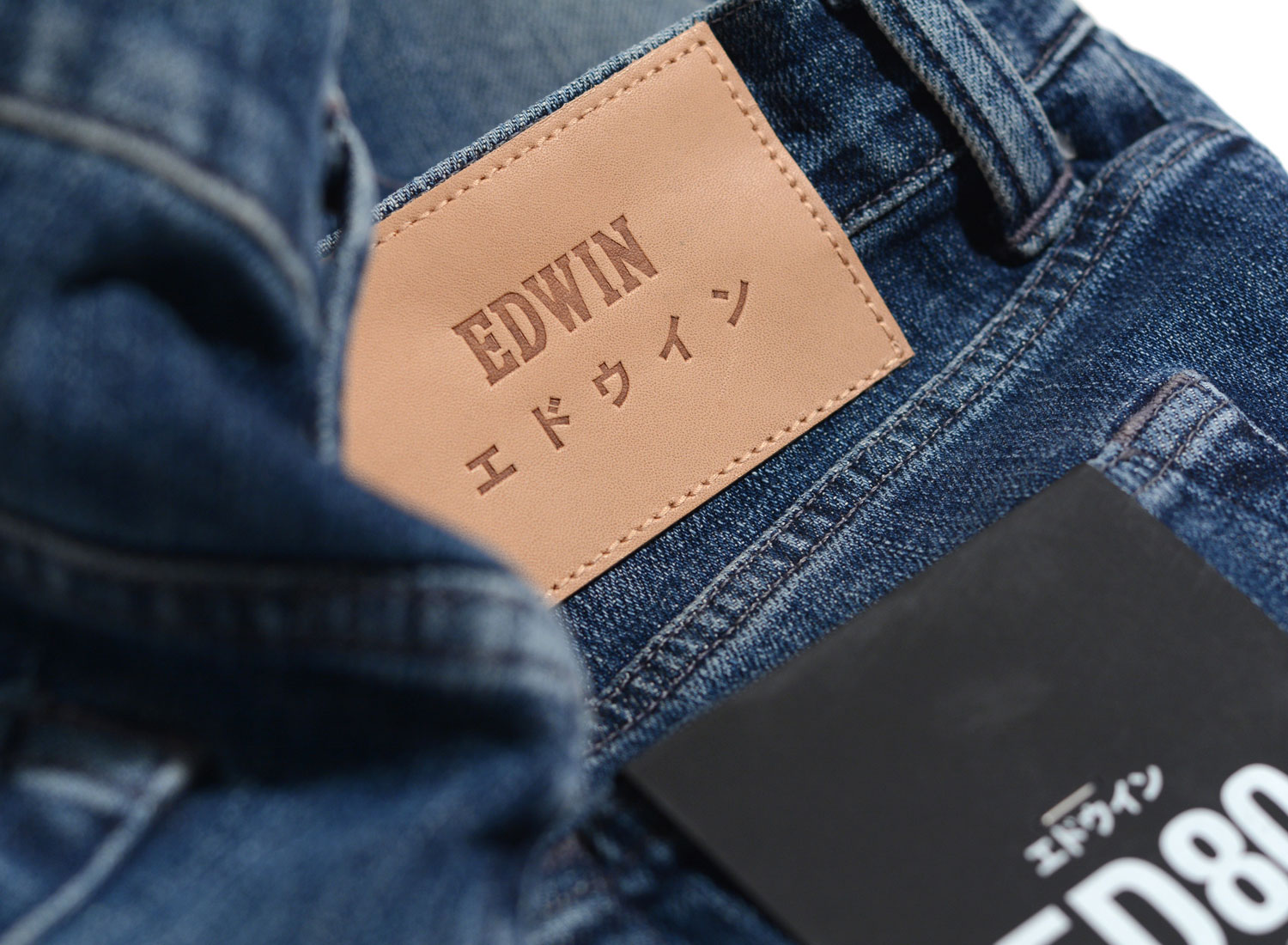 EDWIN ED-80 CS Yuuki Blue Denim Takeo Wash I027222. Coupe slim carotte en denim stretch 12.8oz CS Yuuki. Tissu stretch Japonais. 98% coton / 2% Élasthanne. Boutons et rivets silver. Braguette zippée. Patch cuir.