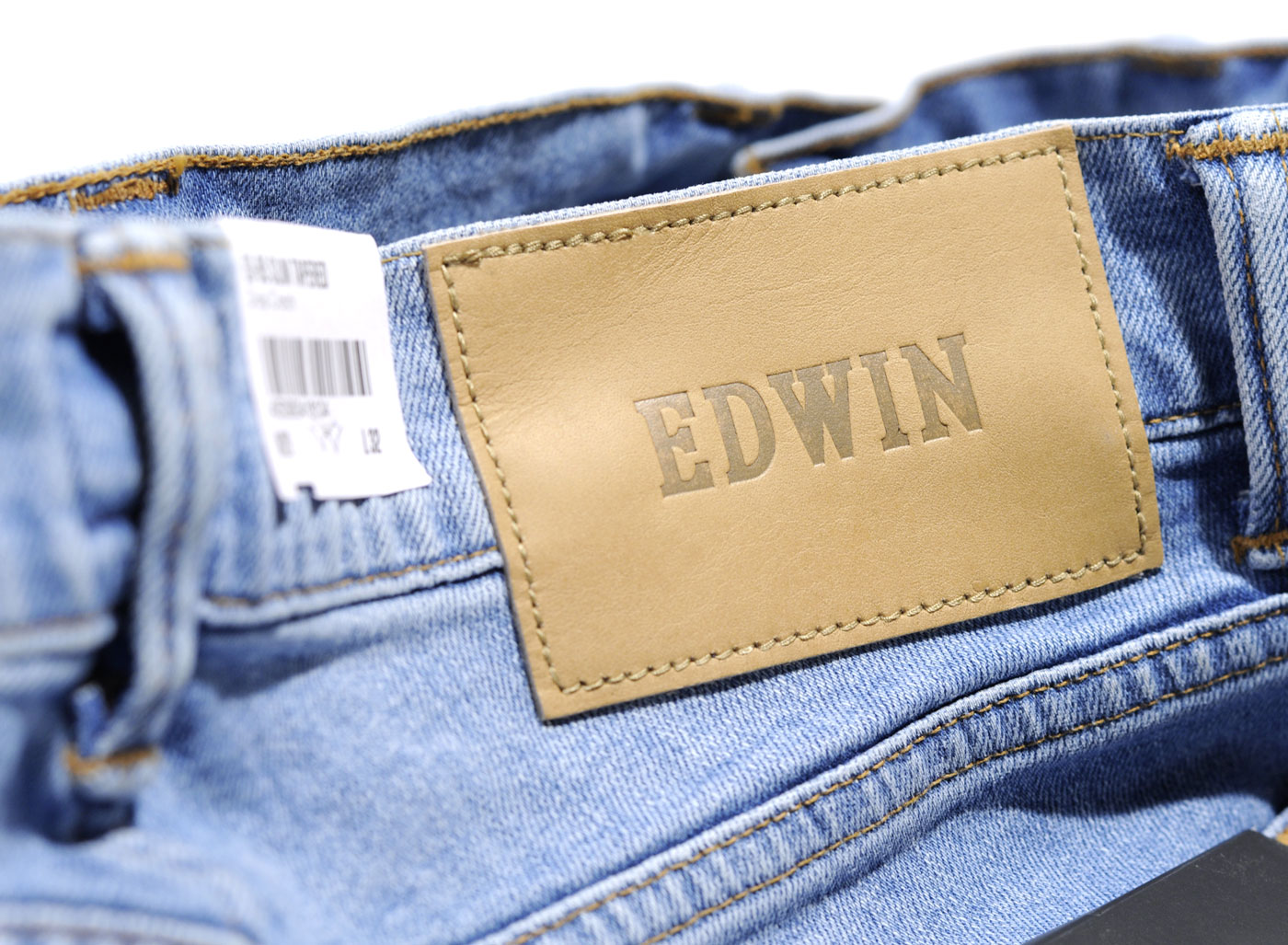 EDWIN ED-85 Slim Drop Crotch CS Power Blue Denim Luster Wash. Coupe slim carotte à entrejambe abaissée très étroit sur le bas. Denim 11oz 99% coton / 1% élasthanne. Boutons et rivets frappés. Braguette zippée. Coutures contrastées. Patch cuir.