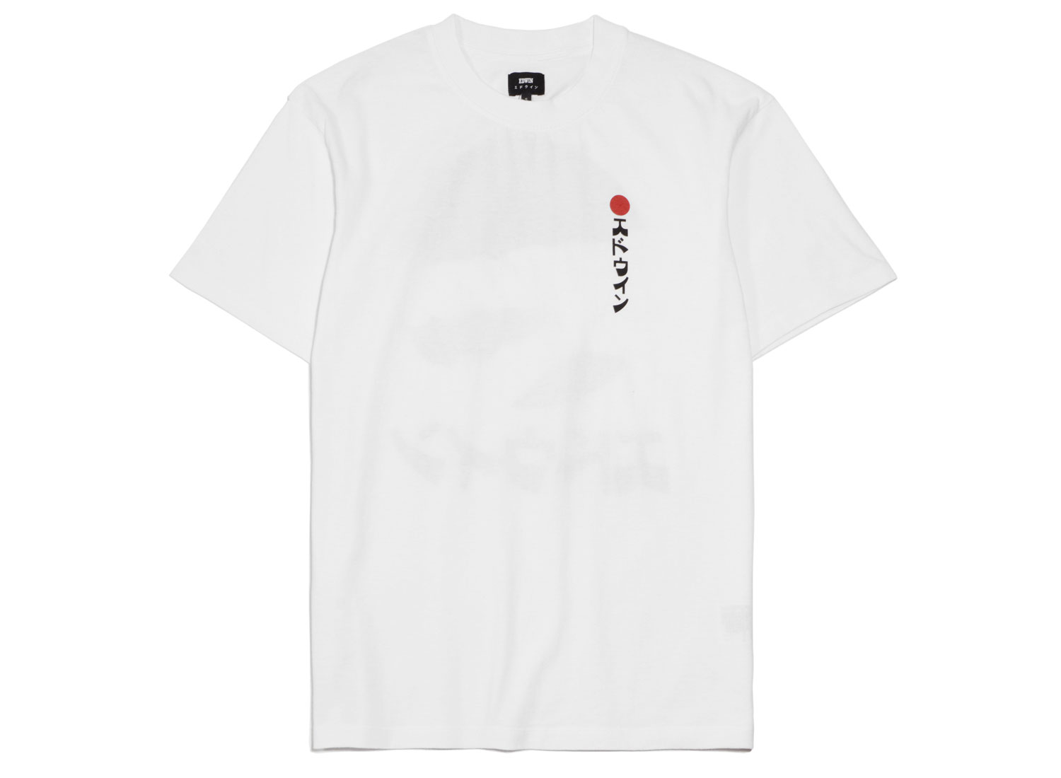 EDWIN Kamifuji Tshirt White I029878. T-shirt col rond en jersey 100% coton. Coupe loose. Impression sur la poitrine et au dos