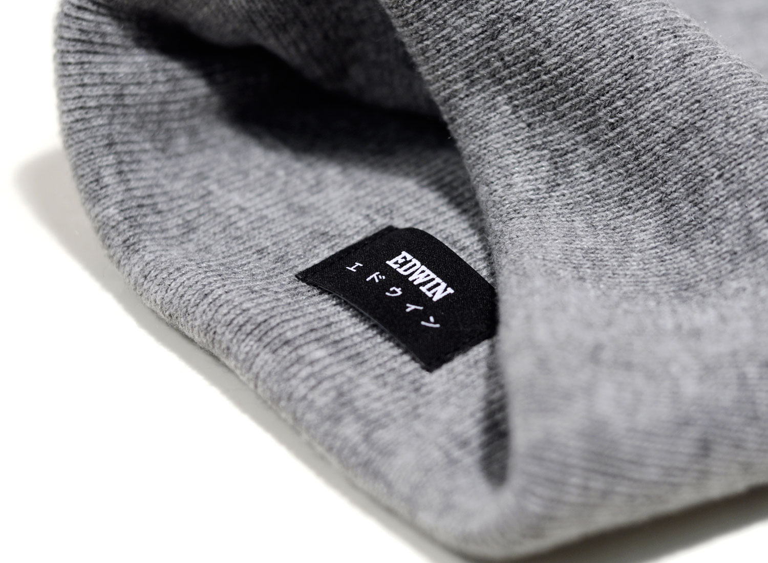 EDWIN Kurt Beanie Grey. Bonnet à revers confectionné en maille 100% acrylique. Petit patch cousu sur l'avant.