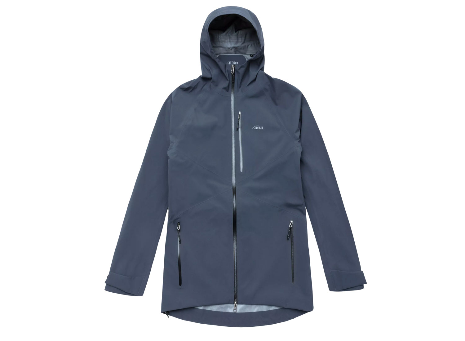 ELLIKER Ayre 3L Waterproof Shell Jacket Navy. Veste technique imperméable, respirante et coupe-vent. Construction en tissu à 3 couches 100% polyester. Capuche, poignets et taille réglable. Coutures étanches. Poches zippées extérieures imperméables au niveau de la poitrine et de la taille. Poche intérieure zippée. Fermetures éclair imperméables sous les bras pour la ventilation. Coupe arrière tombante.