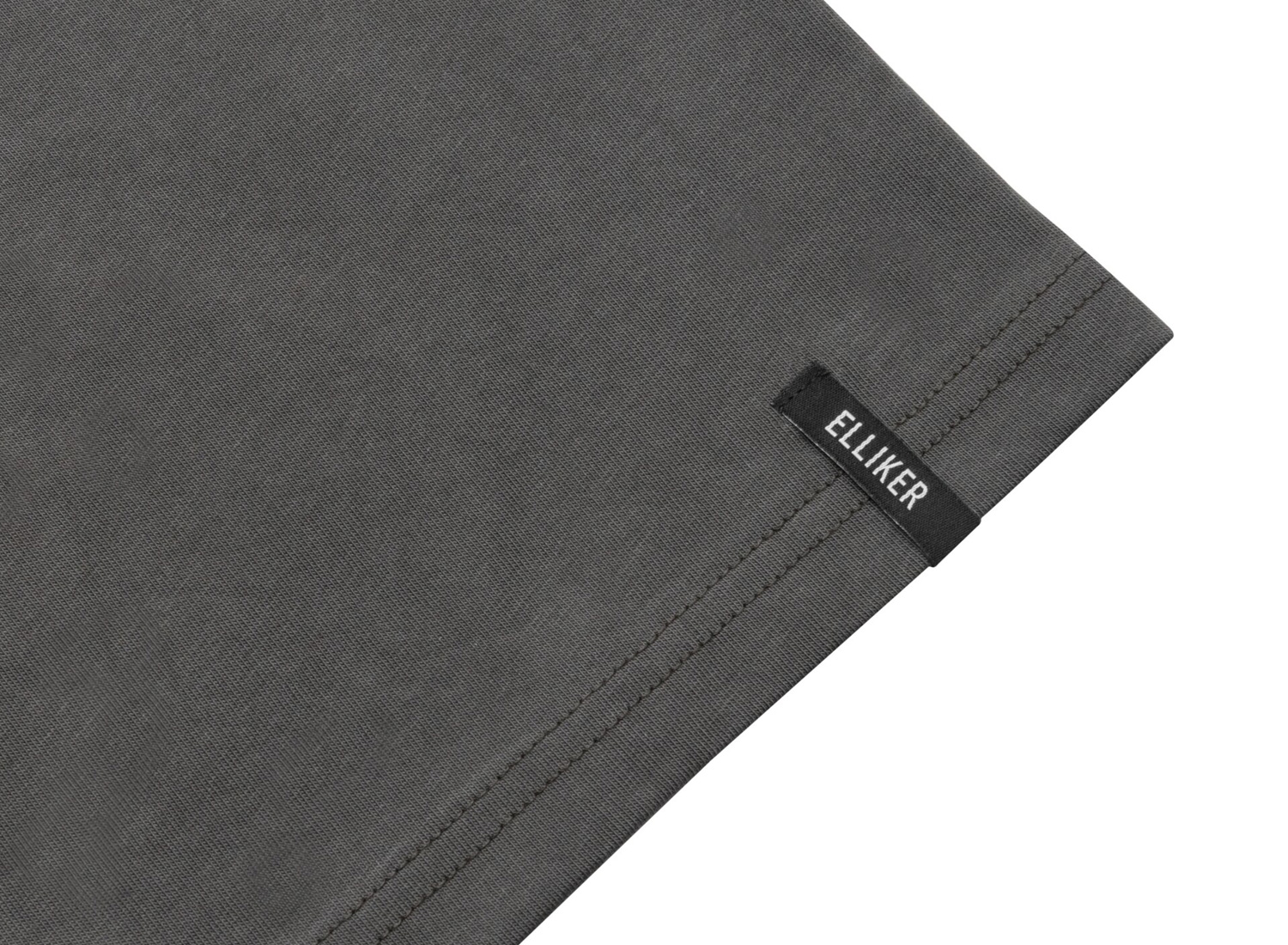 ELLIKER Rill Hill Print Tshirt Grey NS40156. T‑shirt manches courtes réalisé dans un tissu épais 220 GSM en coton peigné 100 % biologique. Coupe relax. Encolure ronde côtelée. Impressions sérigraphiées à l'avant et au dos. Petit logo tissé sur la manche.